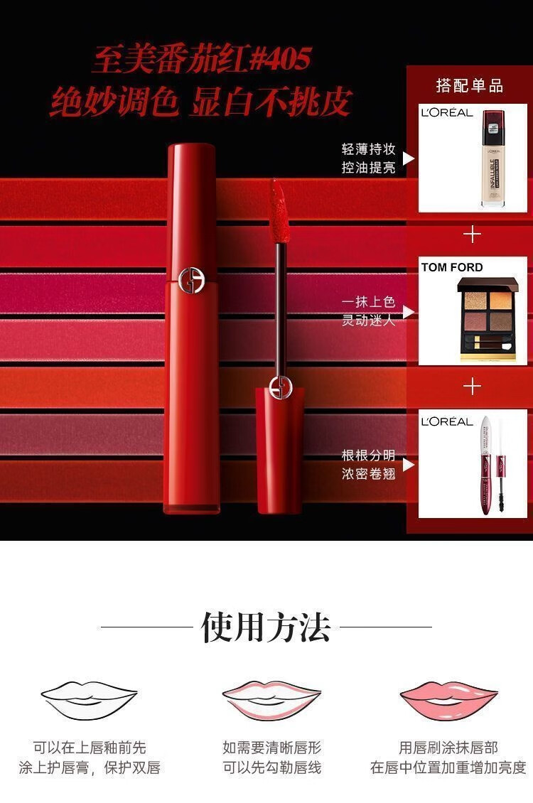 阿玛尼(ARMANI)红管丝绒唇釉#405烂番茄6.5ml丝绒哑光显白口红【临期清仓】