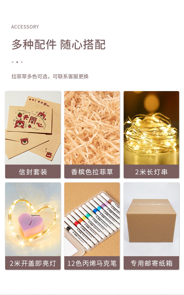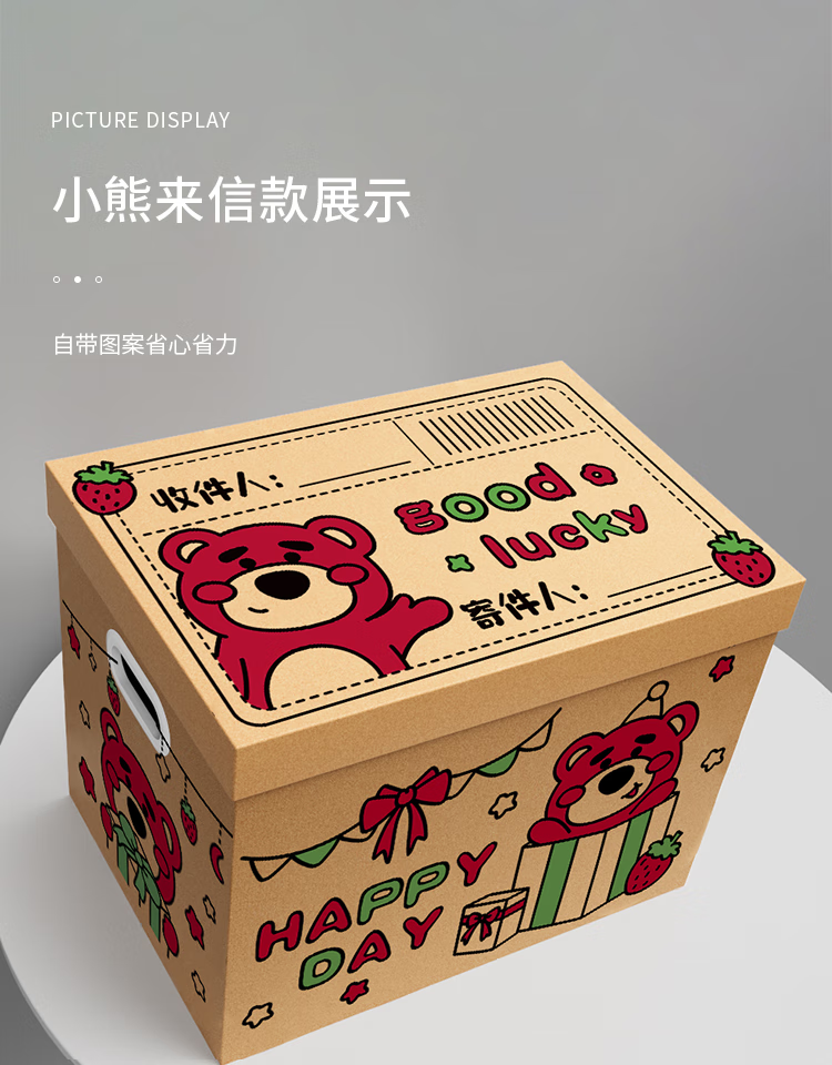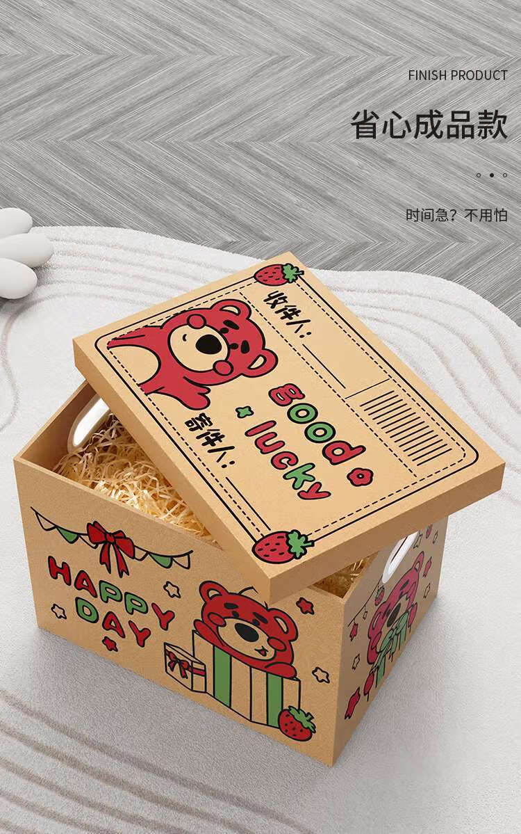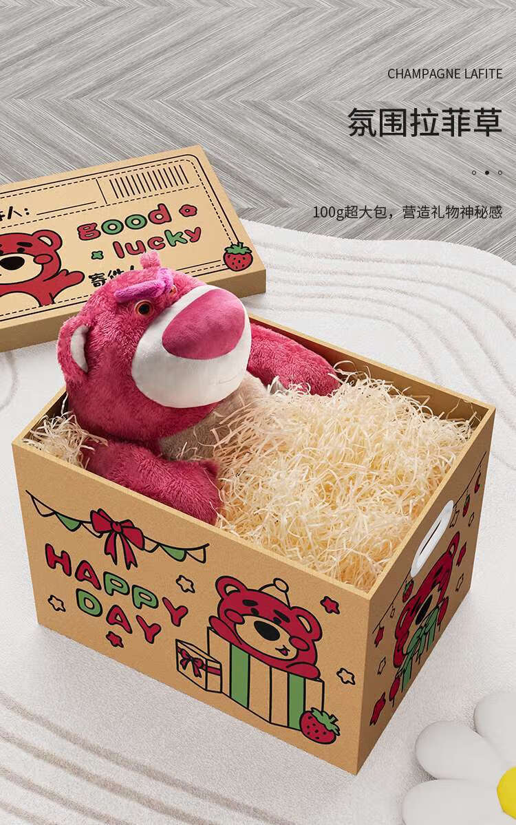 礼美达草莓熊生日礼物盒礼盒空盒子包装盒大号零食纸箱高级礼品盒收纳箱 拉菲草+开盖既亮灯【送贺卡】 小熊来信2号35*26*26