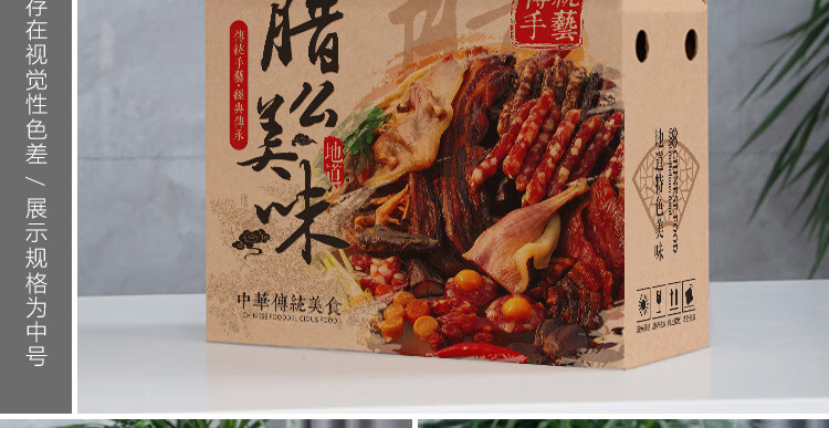 动蚁四川腊味礼盒空盒子年货广式腊肠礼品盒5/10斤高档腊肉香肠包装盒 腊味/数码屋顶/大号 线下用空礼盒