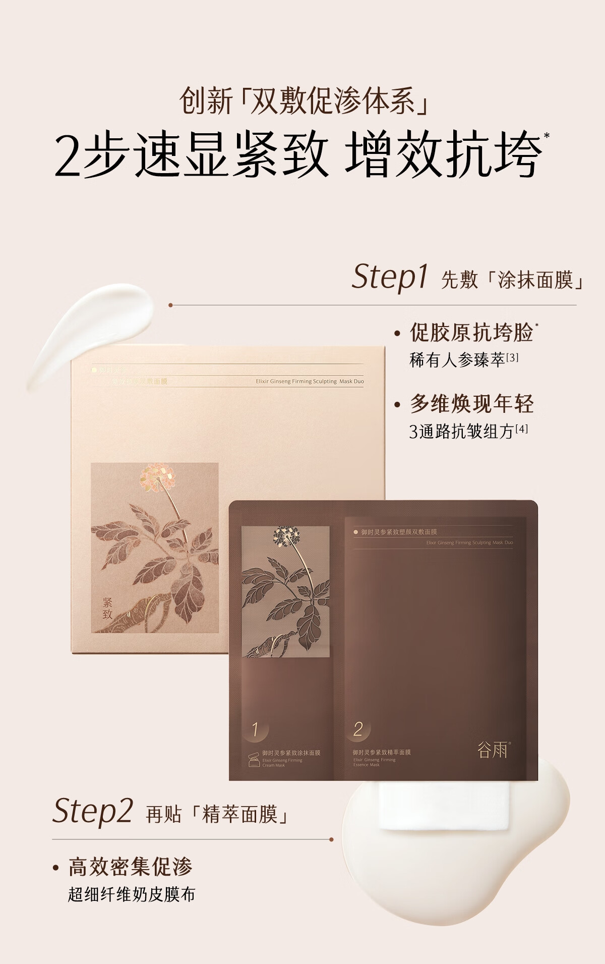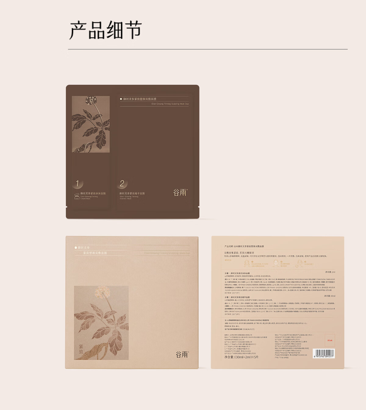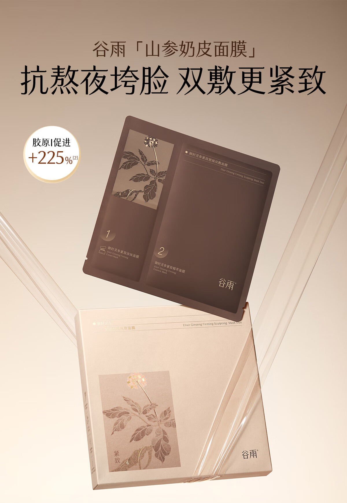谷雨山参奶皮面膜5片/盒紧致淡纹补水保湿贴片面膜护肤品