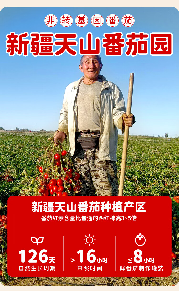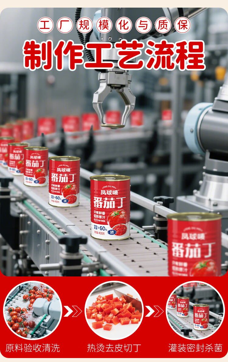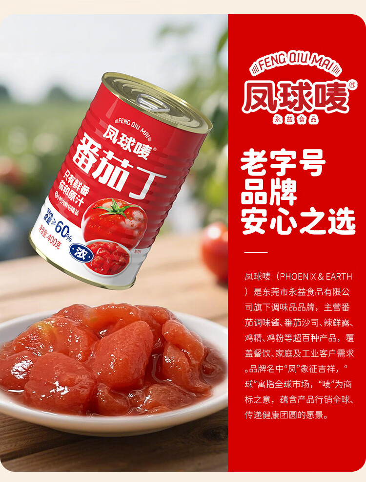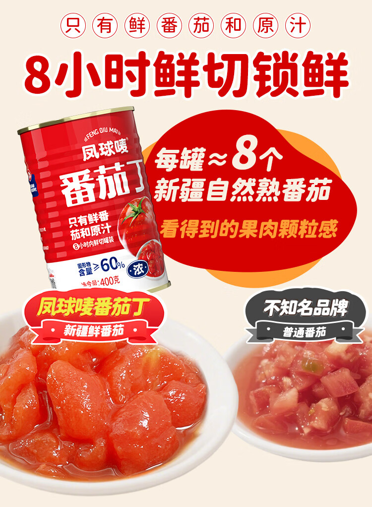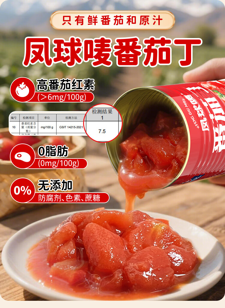 凤球唛新疆番茄罐头400g*6罐【25年8月产】0添加西红柿块番茄块丁