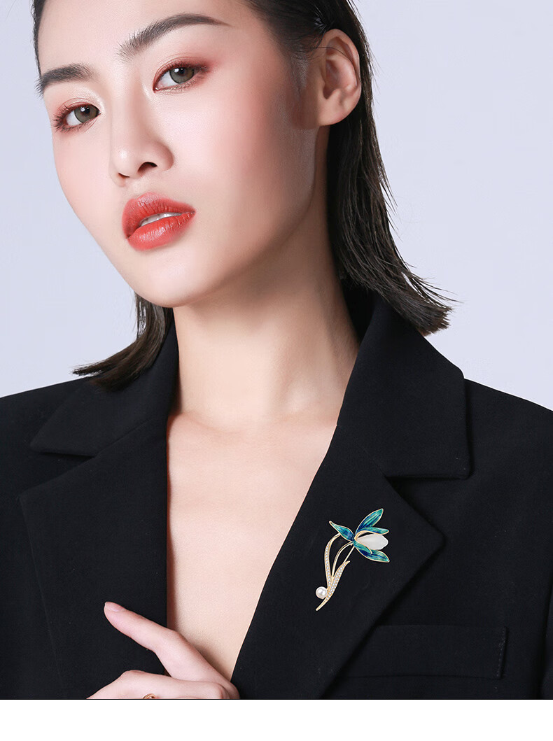 Qlady和田玉珍珠胸花胸针高档女别针配饰丝巾扣防走光扣生日新年礼物