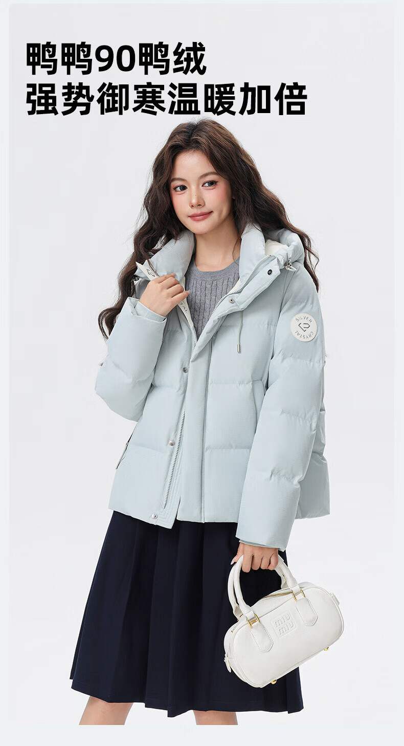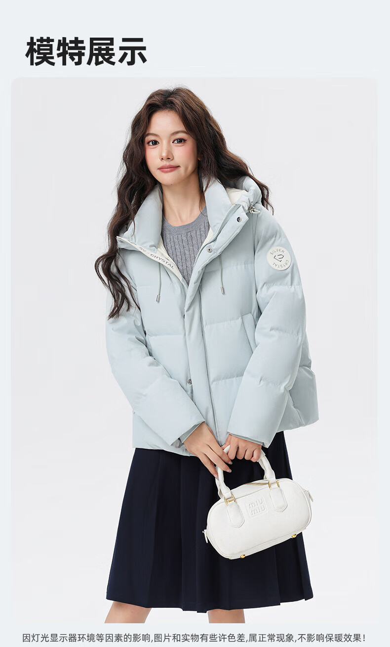 鸭鸭(YAYA)短款羽绒服女2025新款90绒小个子甜美气质百搭休闲加绒短外套HT 冰川蓝 L (165)