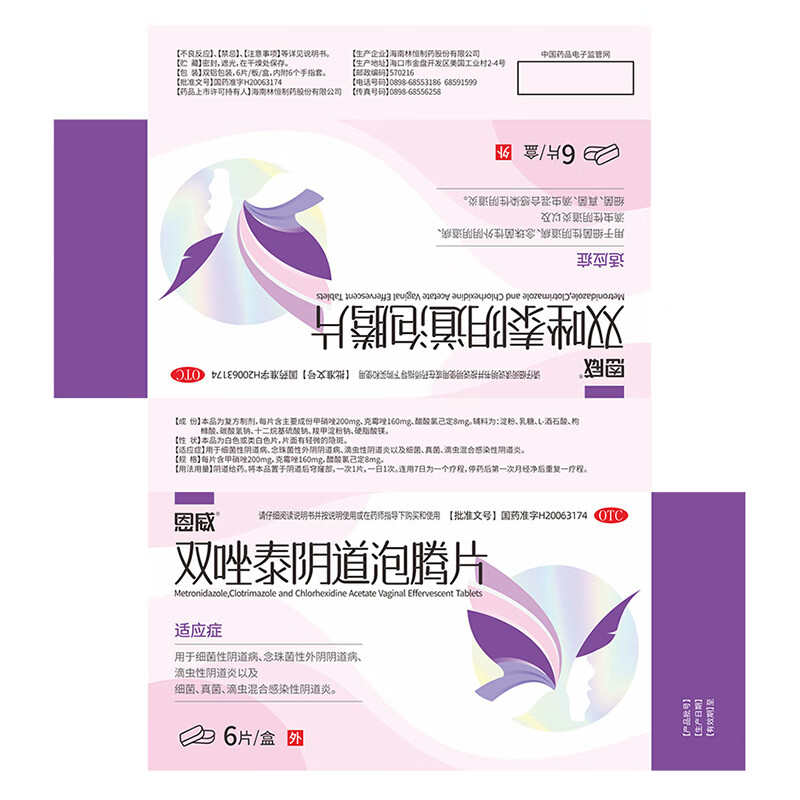 恩威洁尔阴 双唑泰栓阴道泡腾片6粒克霉唑栓霉菌性阴道炎妇科炎症用药阴道塞药甲硝唑栓剂妇科炎症京东自营