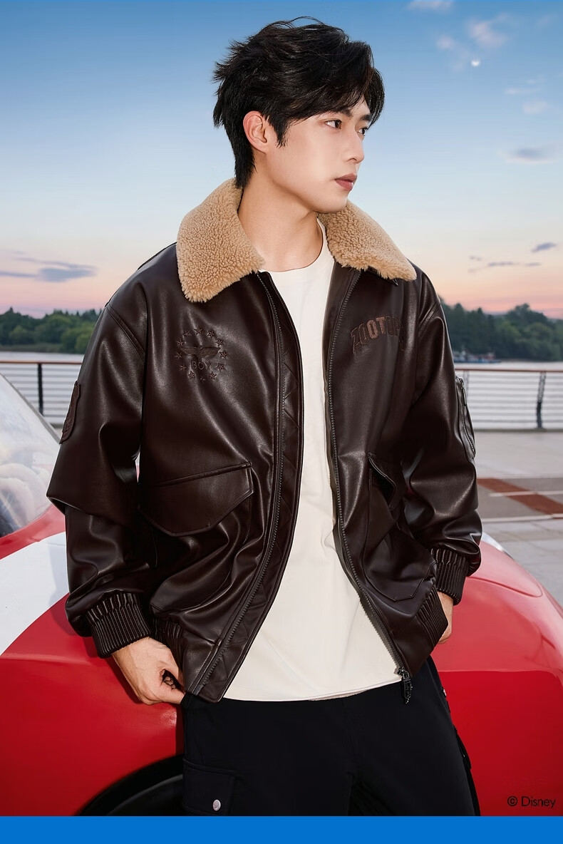 BOY LONDON【迪士尼疯狂动物城合作】毛领仿皮夹克冬季外套N25011 咖啡色 XS