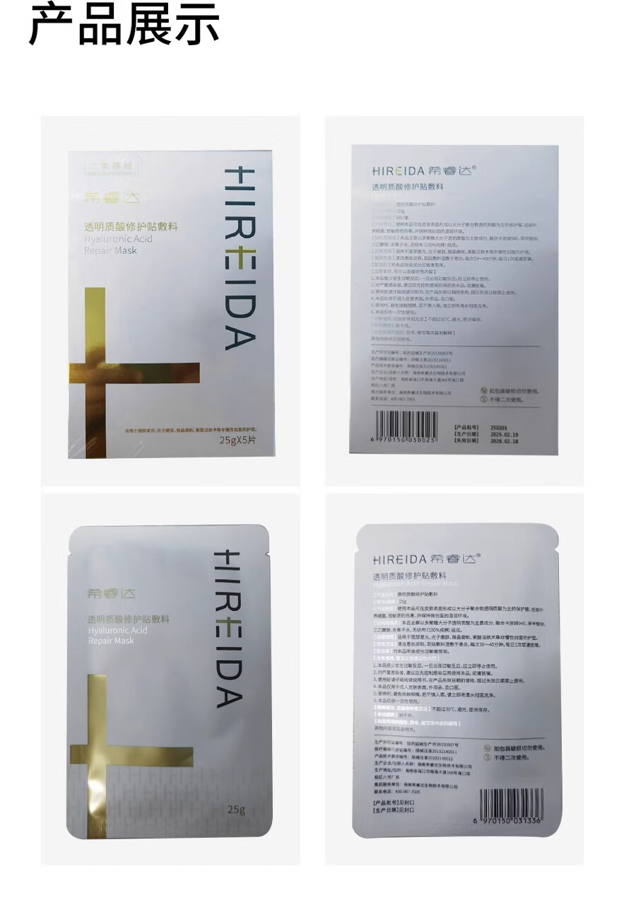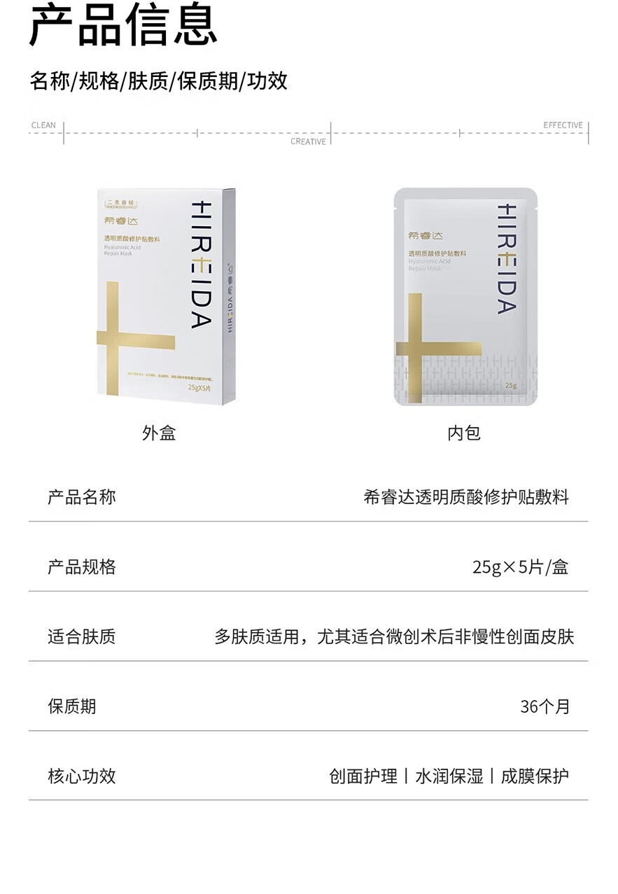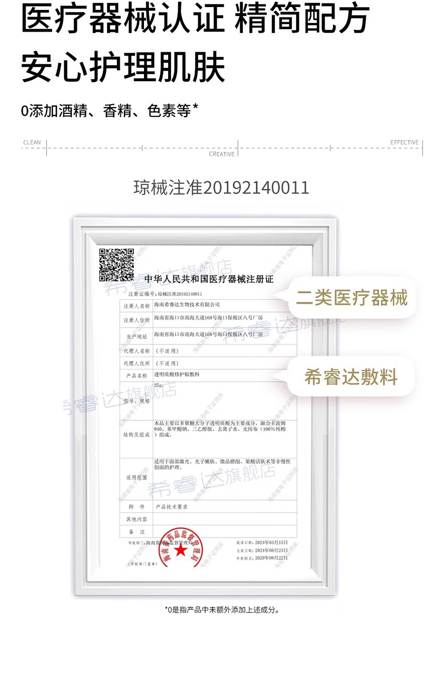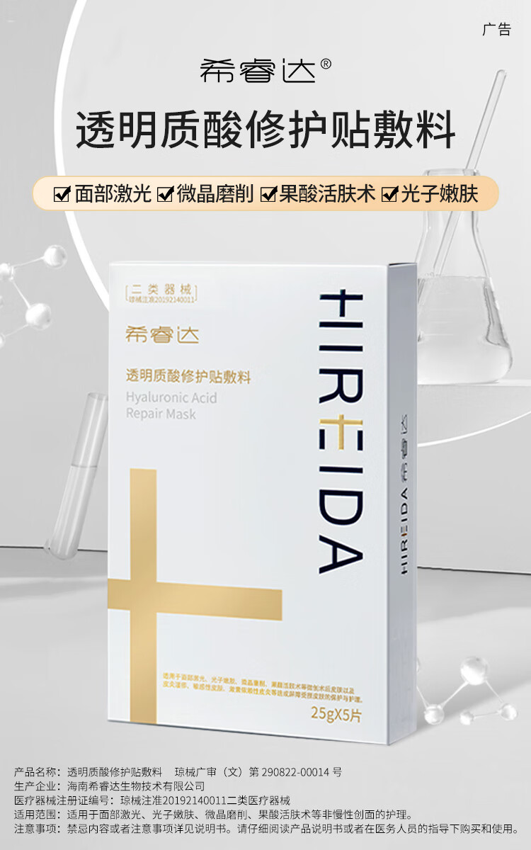 希睿达透明质酸修护贴敷料医用冷敷贴医美术后保湿成膜修护屏障 械字号 透明质酸修护贴敷料12片