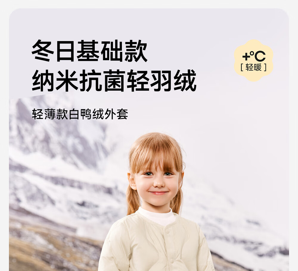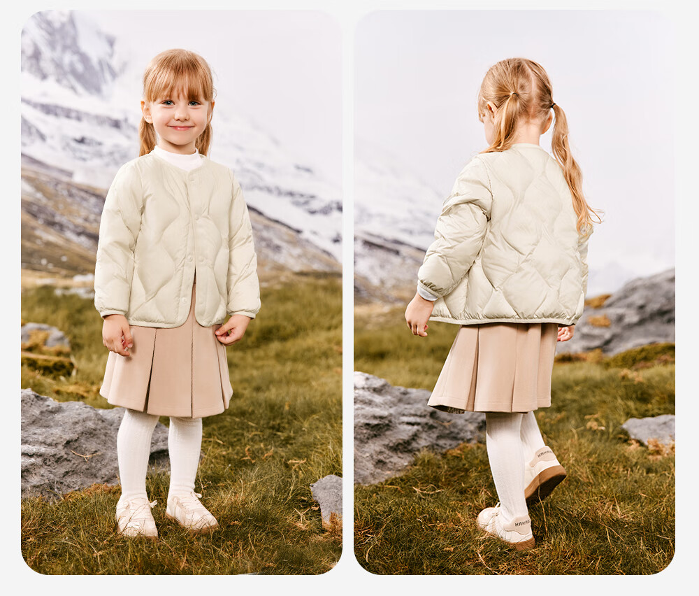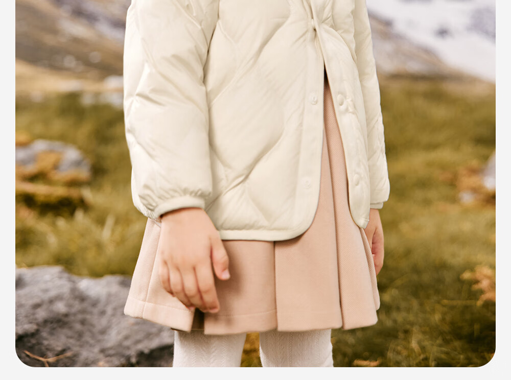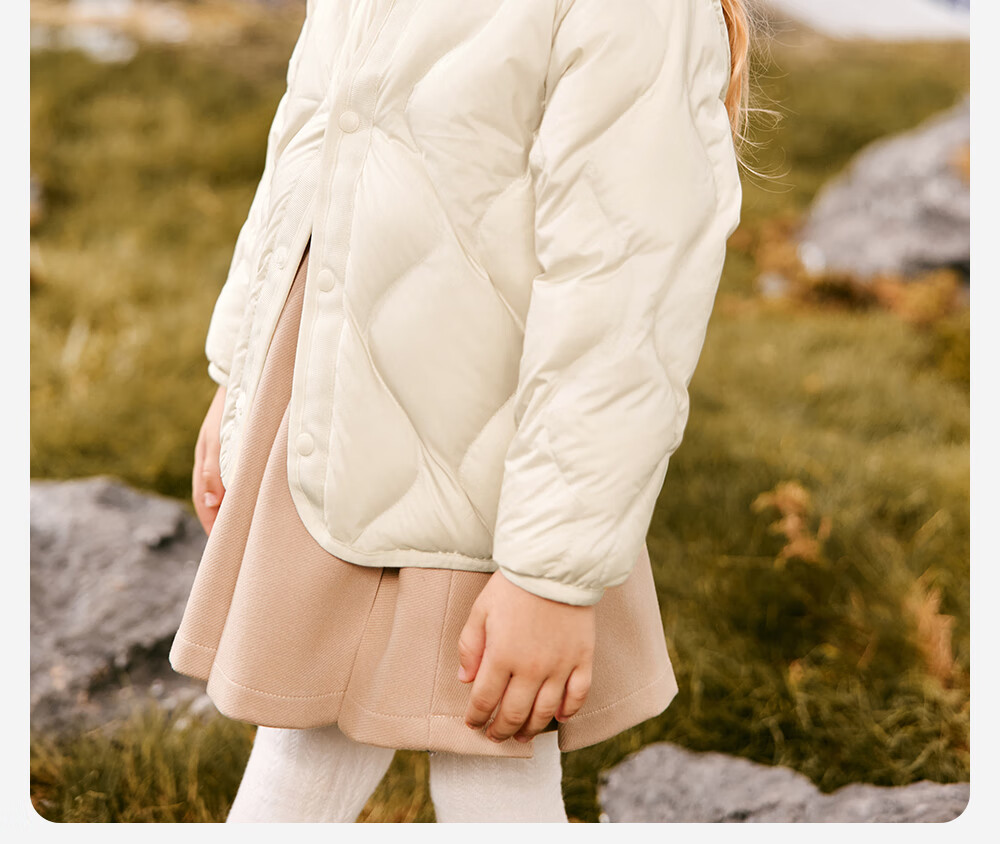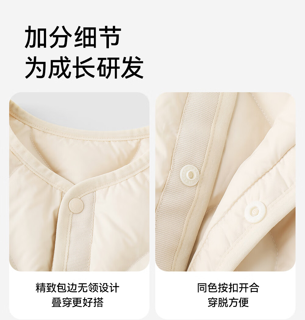 英氏(YEEHOO)儿童羽绒服外套轻薄款秋冬百搭保暖抗菌羽绒服男女童羽绒服超韧绒 奶杏色 105 cm
