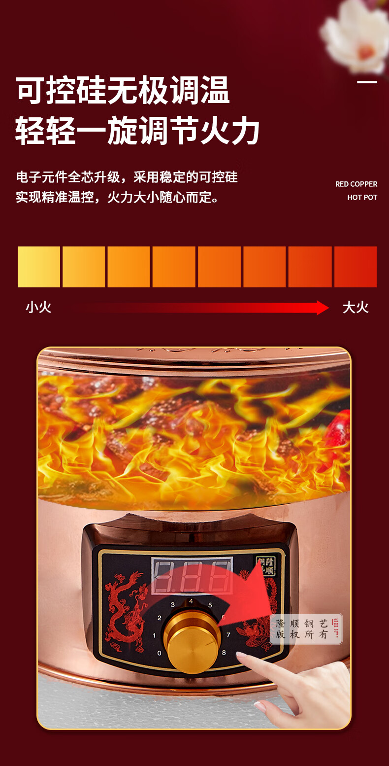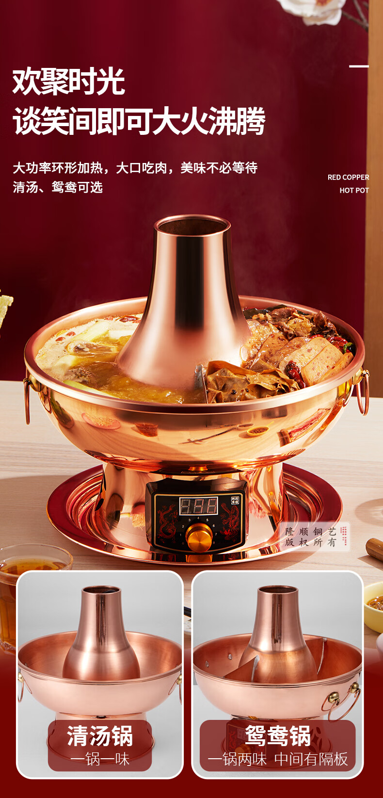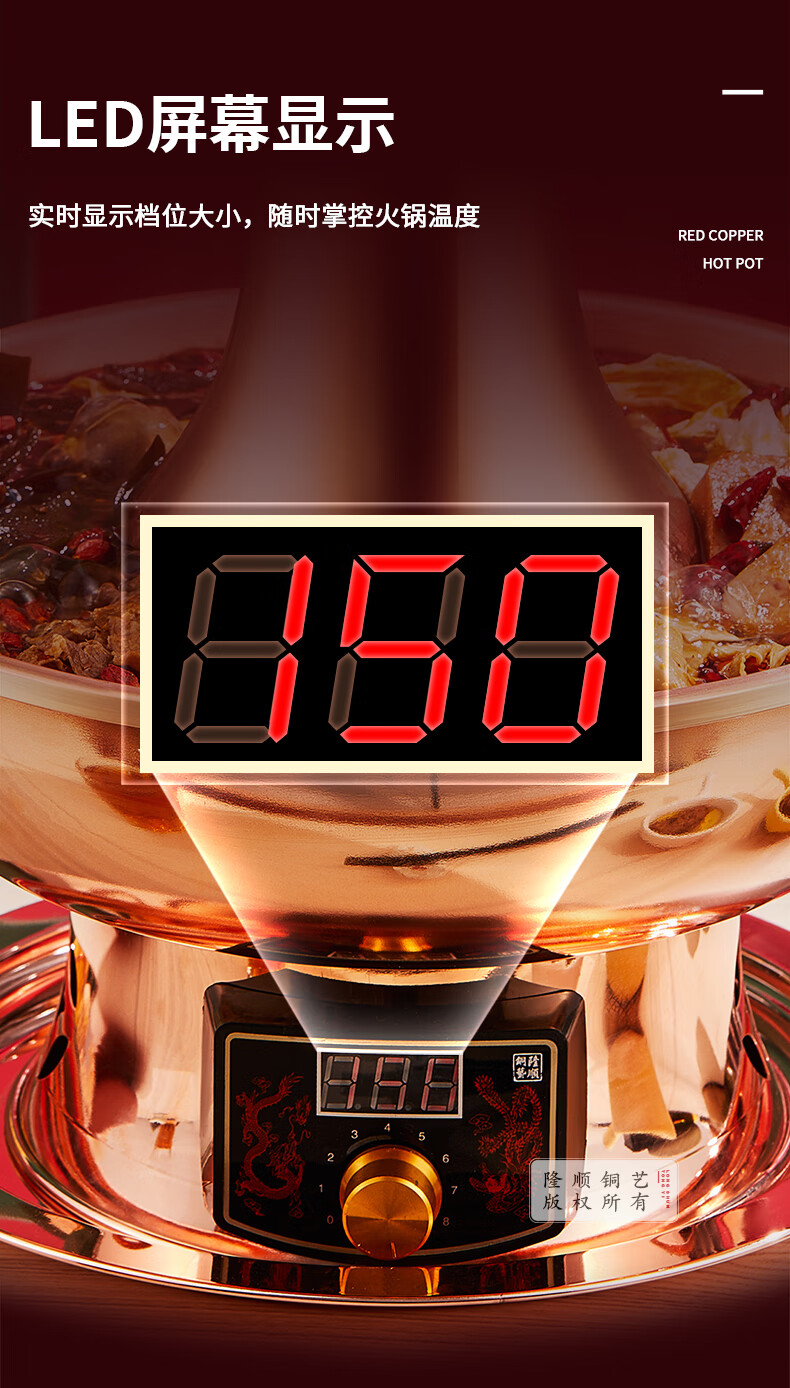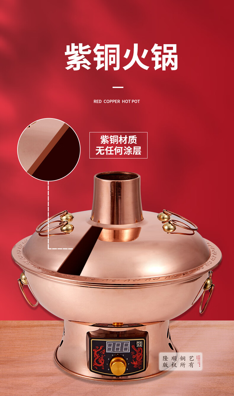 隆顺铜艺铜火锅插电紫铜木炭铜火锅炭炉插电铜锅老北京涮羊肉锅具 鸳鸯6-8人【旗舰款】 34cm