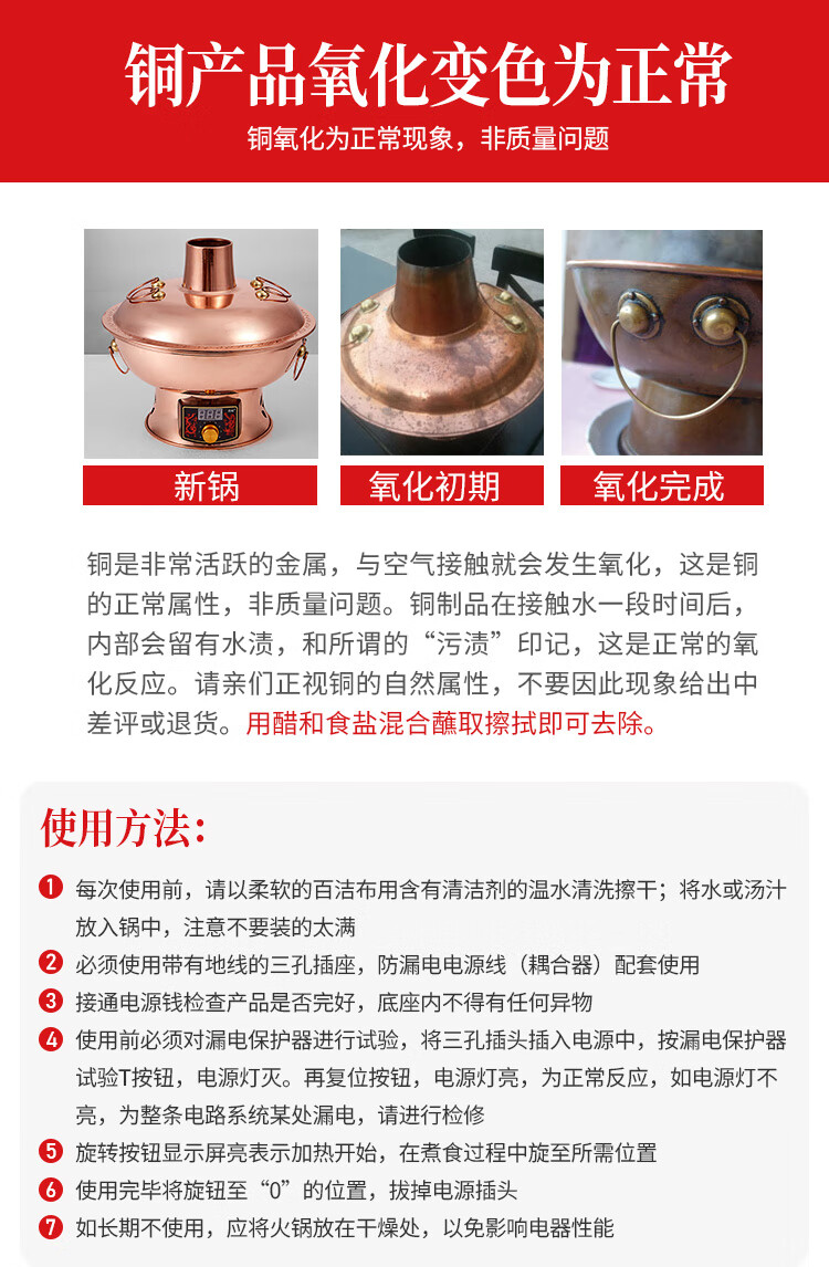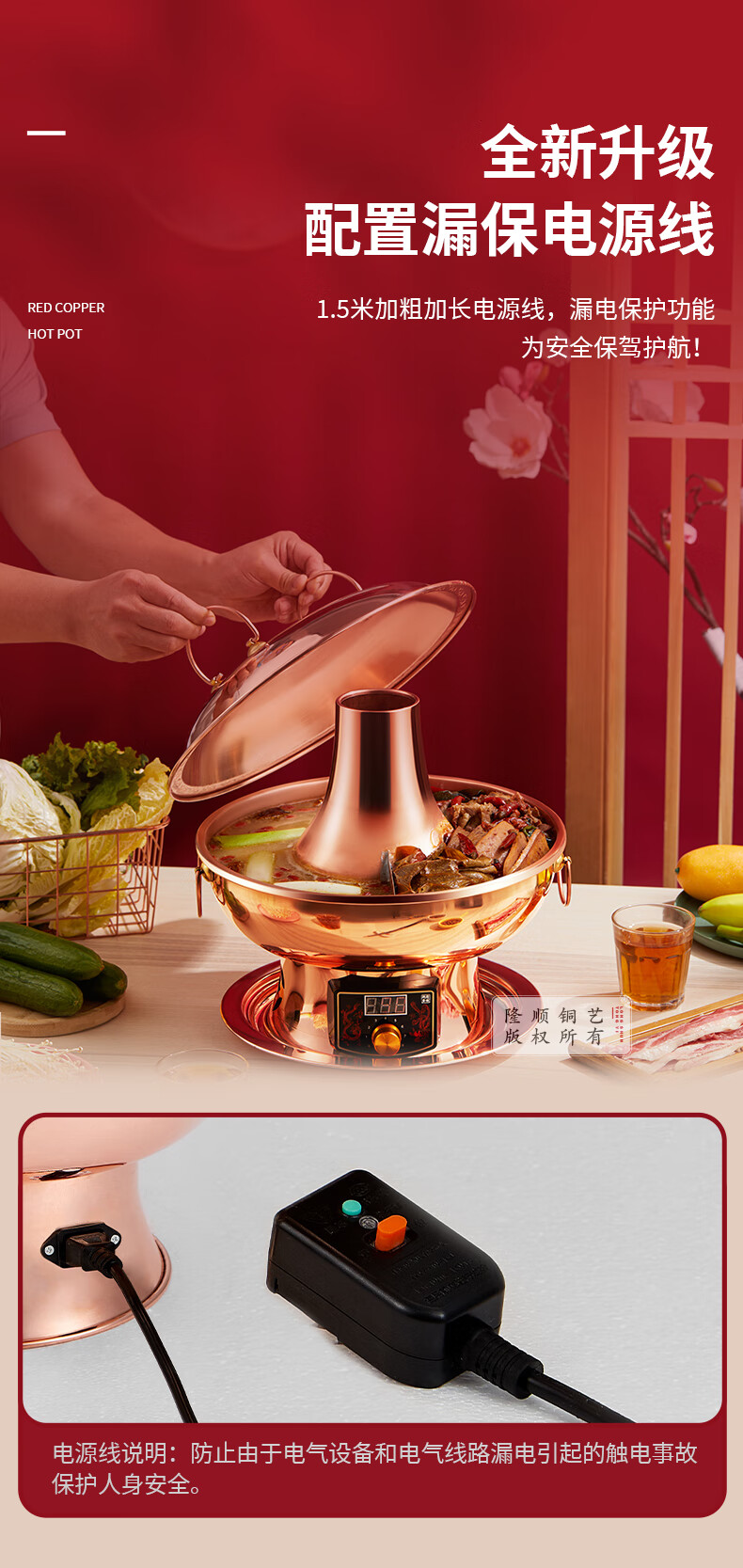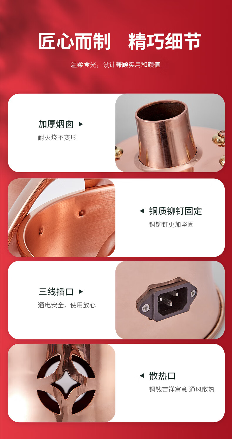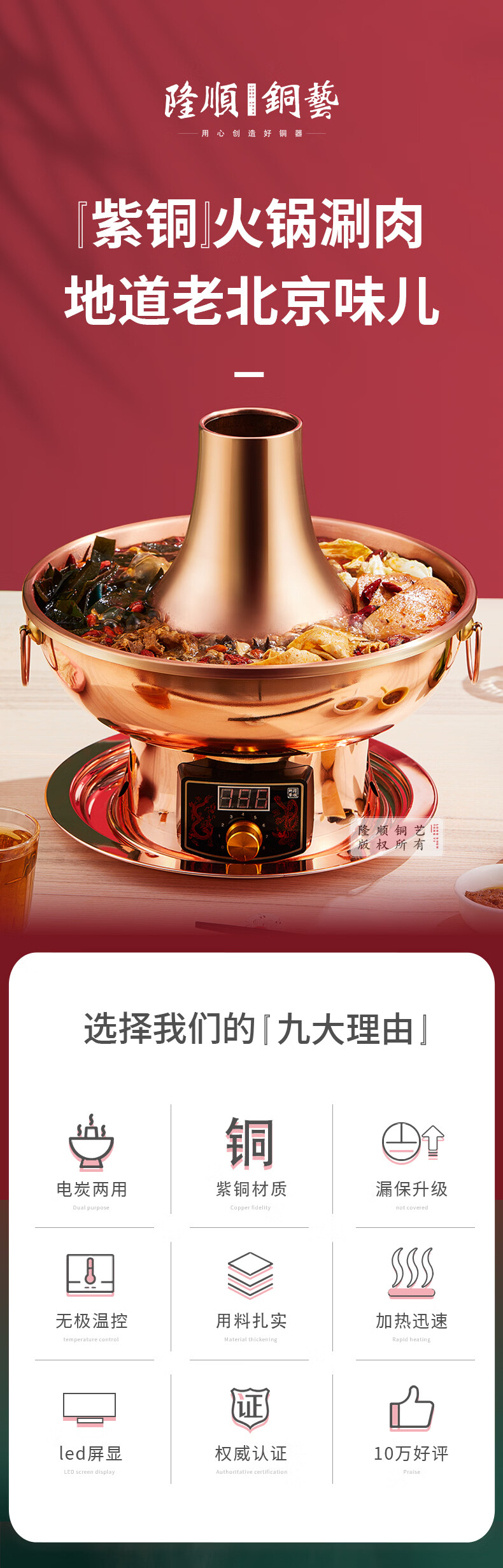 隆顺铜艺铜火锅插电紫铜木炭铜火锅炭炉插电铜锅老北京涮羊肉锅具 鸳鸯6-8人【旗舰款】 34cm