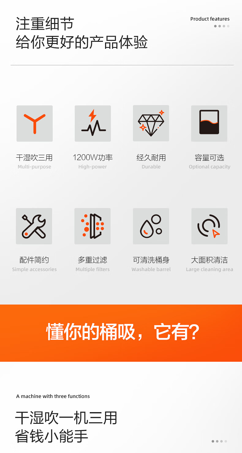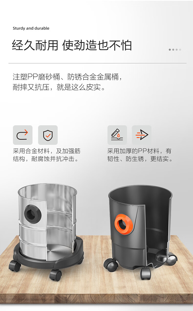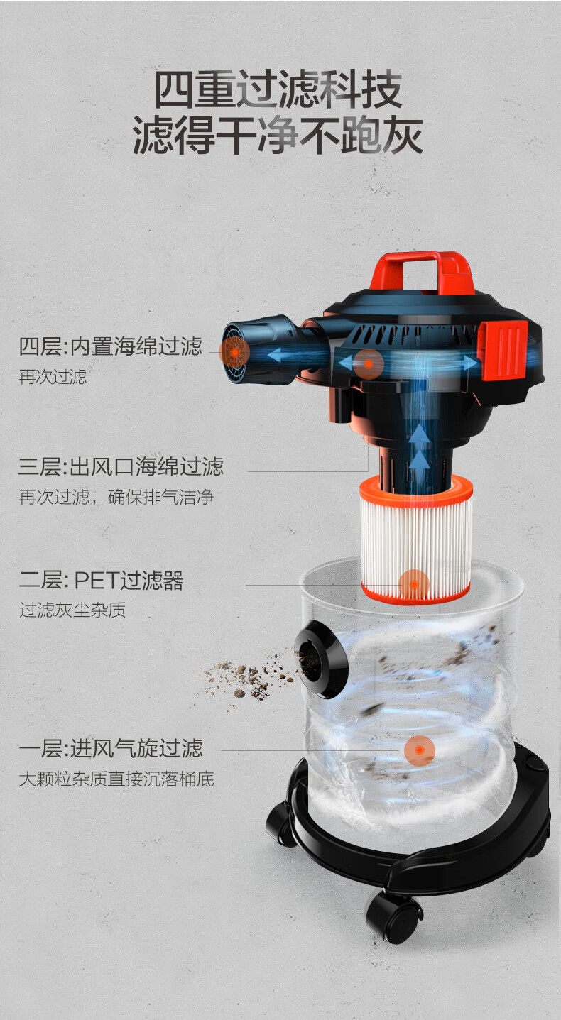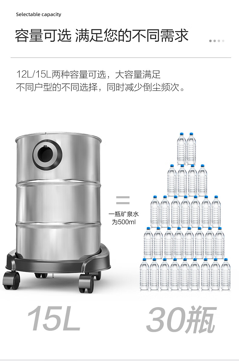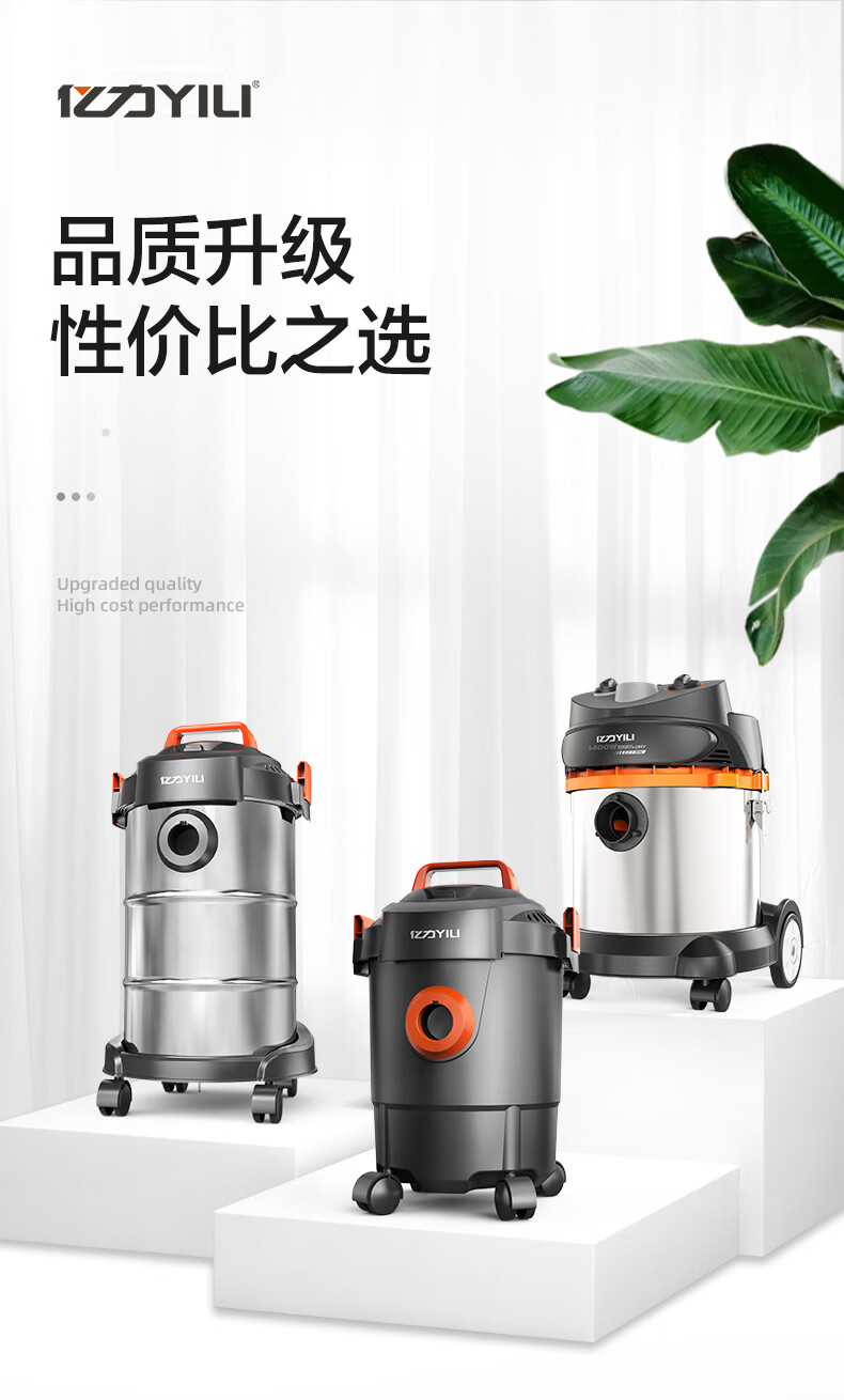 亿力工业级吸尘器商用家用装修美缝干湿吹三用 汽车车载吸水除尘器大吸力有线手持桶式吸尘机6263-15L