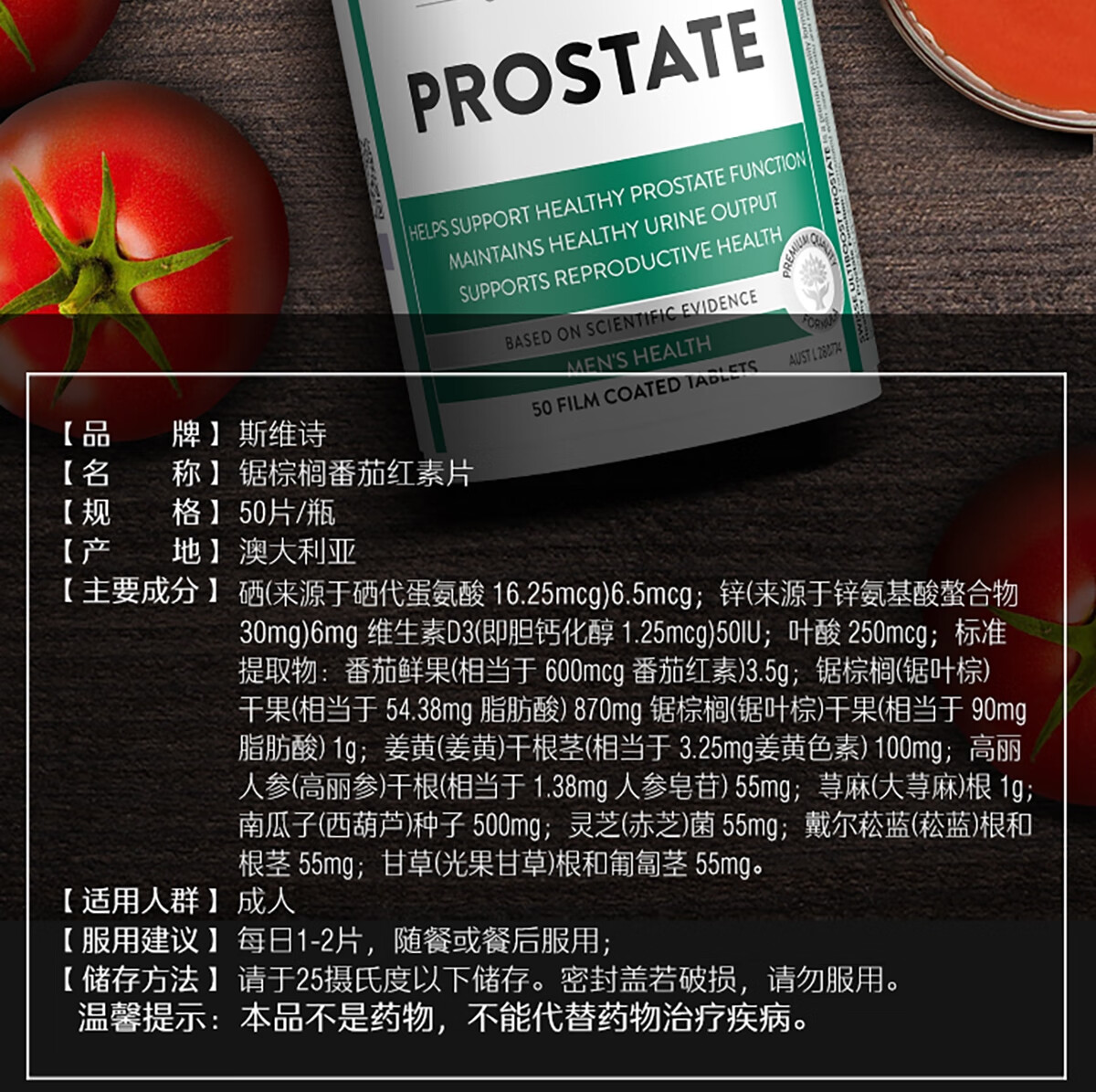 Swisse男士锯棕榈番茄红素片 50片*1瓶 男性备孕 海外进口