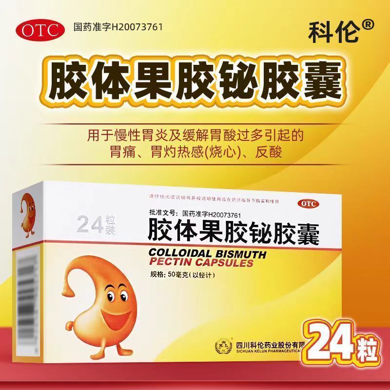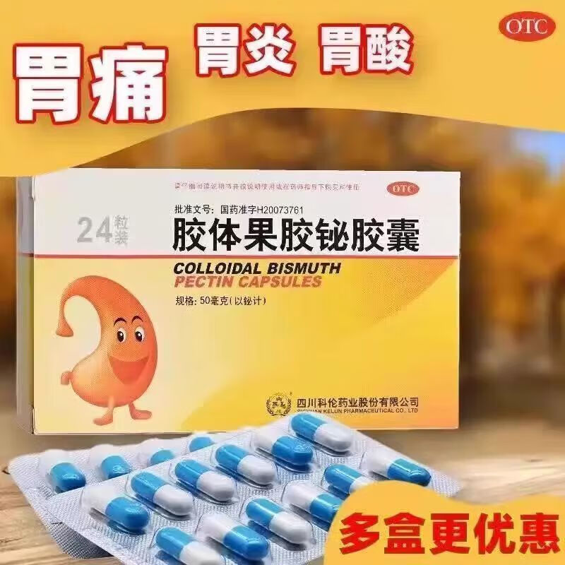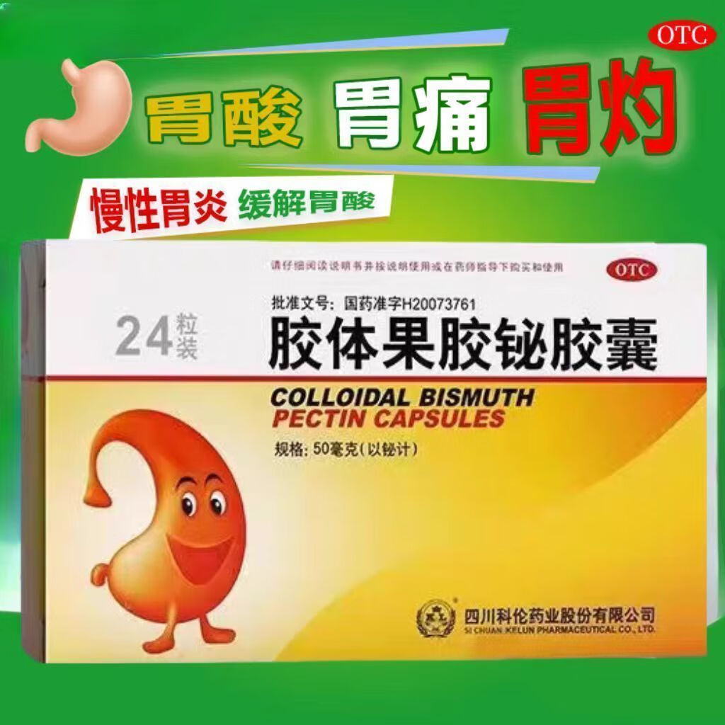 幽门螺旋杆菌四联药之一治反酸烧心胃酸保护胃粘膜 慢性胃炎药 胶体果胶铋胶囊50mg*24粒 6盒活动价【杀灭幽门螺旋杆菌】对症治