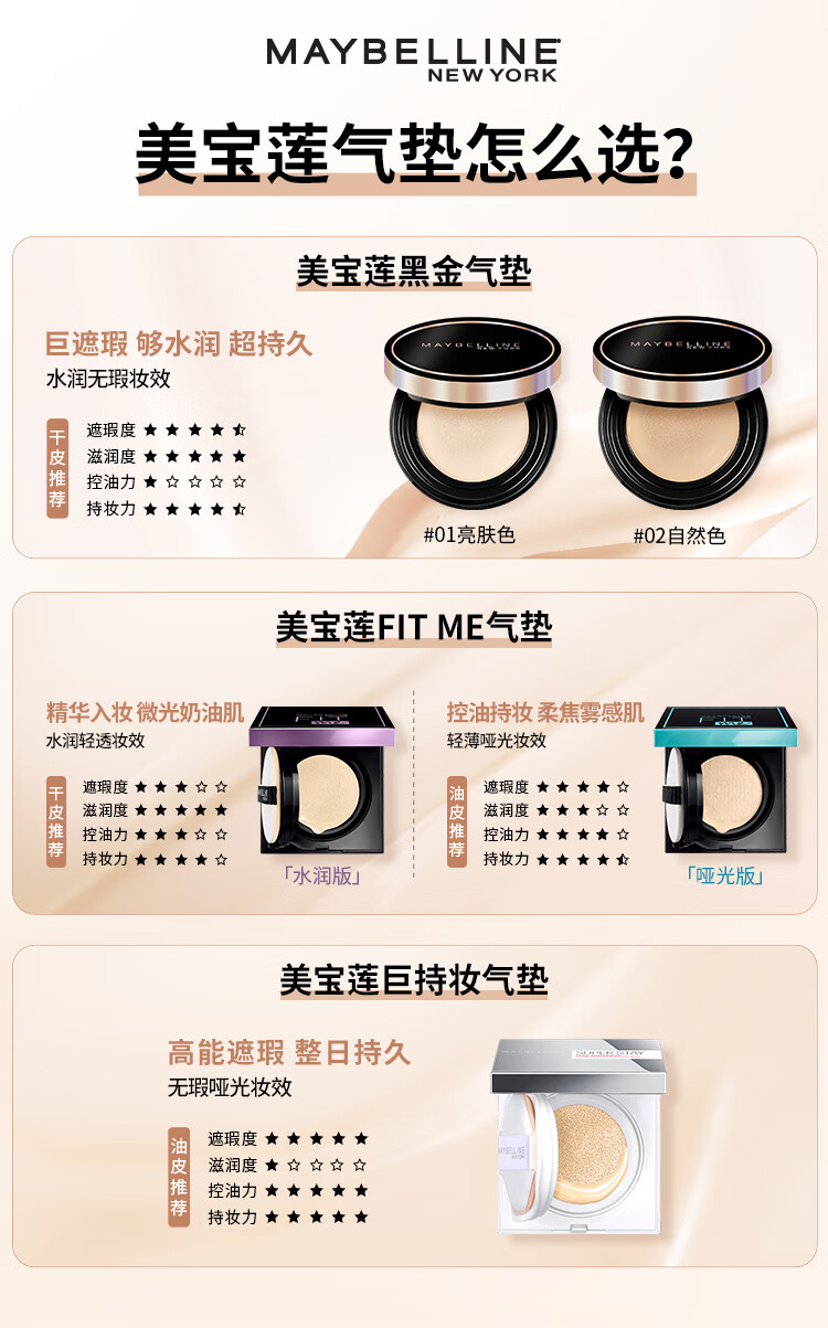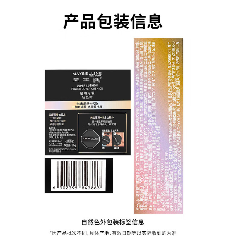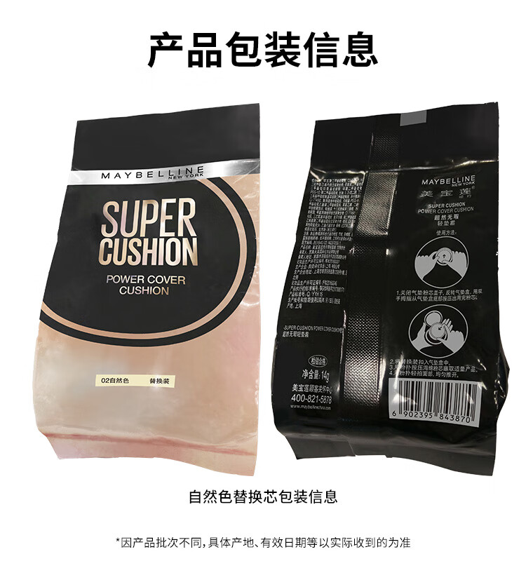 美宝莲超然无瑕黑金气垫BB遮瑕提亮含替换装02自然色 14g*2新年礼物女