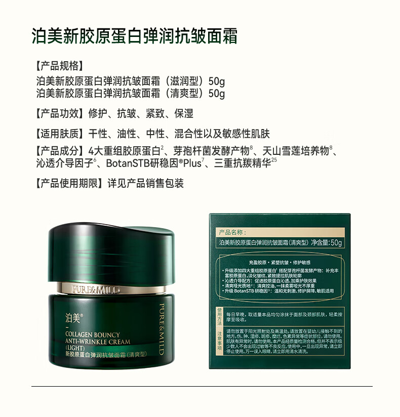 泊美【会员专享价】新胶原蛋白弹润抗皱面霜5g充盈弹嫩清爽型
