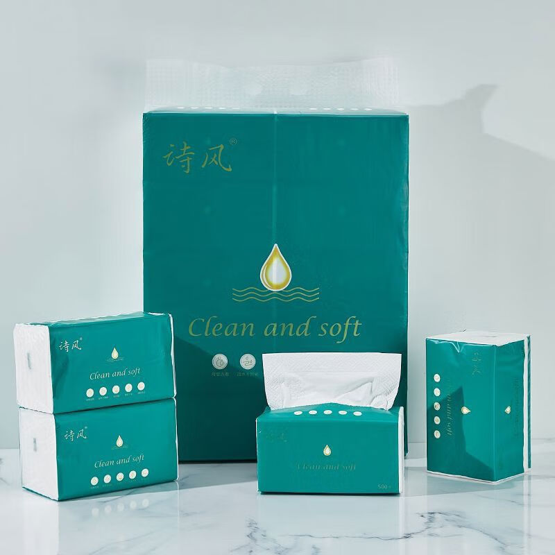 诗风抽纸500张整箱实惠装大号原生木浆可湿水纸巾餐巾纸家用100包 1层 1抽*1包