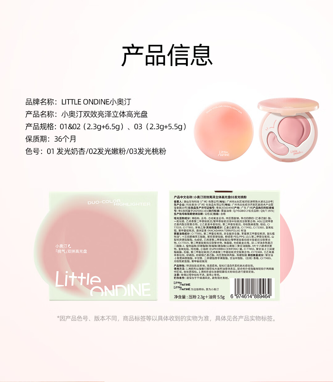 小奥汀(littleondine)桃子高光膏双效亮泽立体高光盘 修容改善面部凹陷高光 生日礼物女 「03发光桃粉」矫正黄气