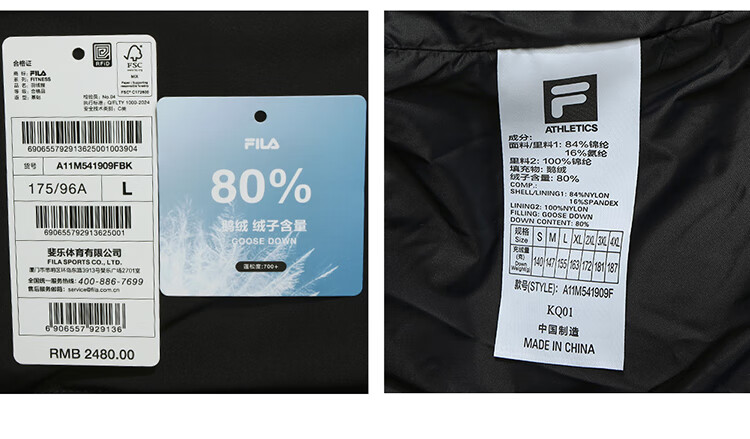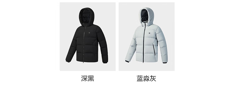 FILA 斐乐男士羽绒服冬季新款运动保暖飞羽连帽外套 深黑-BK XL 180/100A/XL
