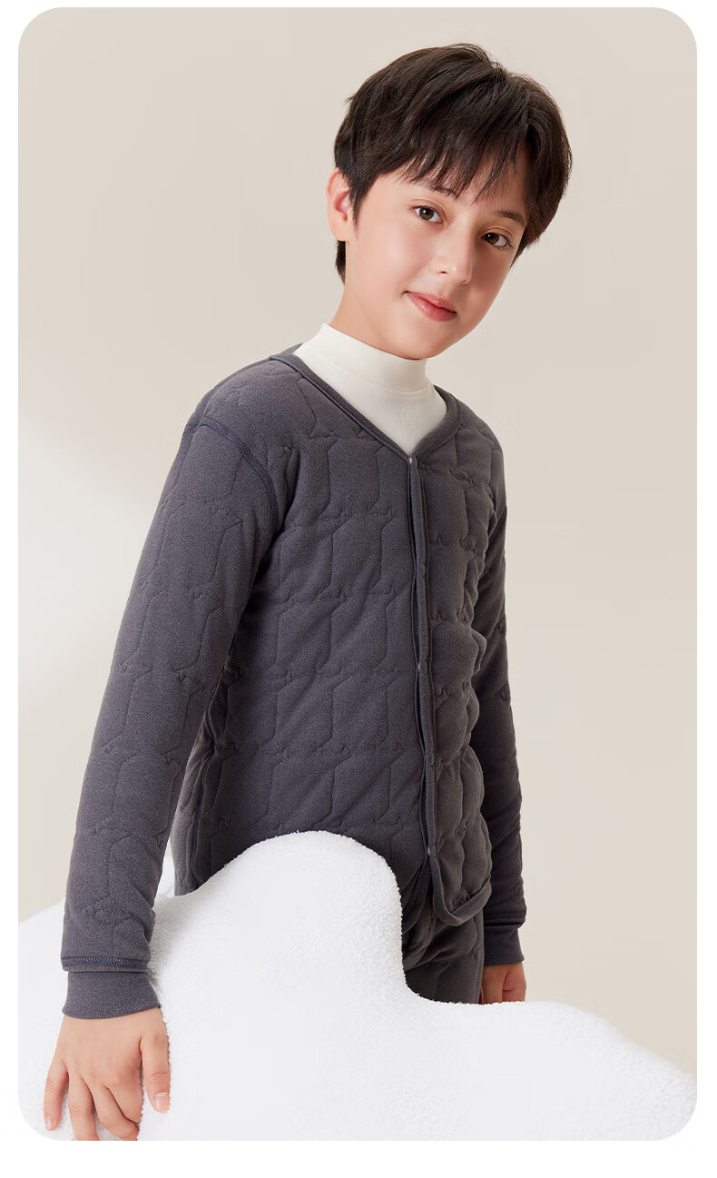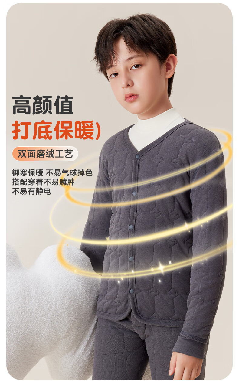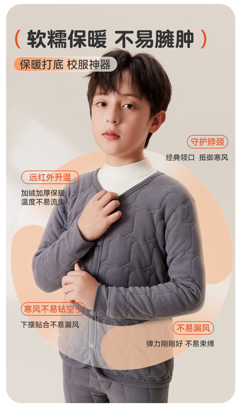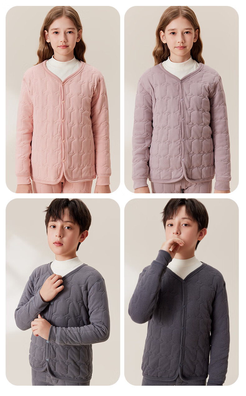 浪莎儿童保暖内衣男童女童秋冬加绒加厚上衣中大童学生校服神器