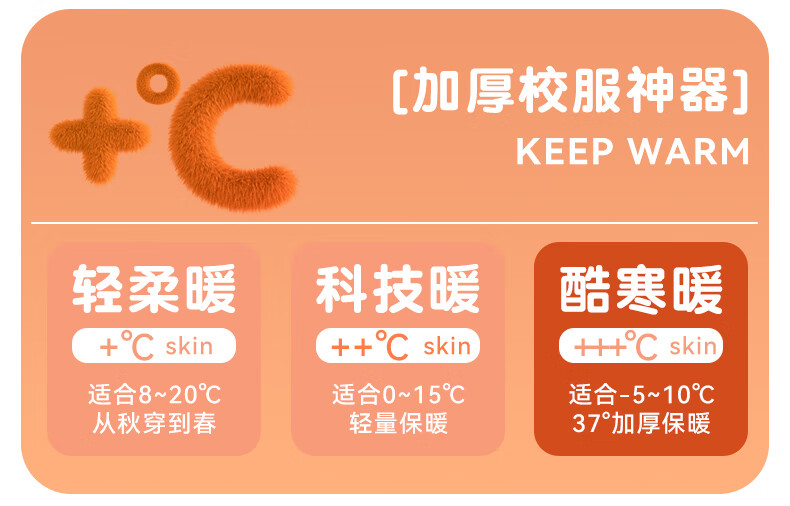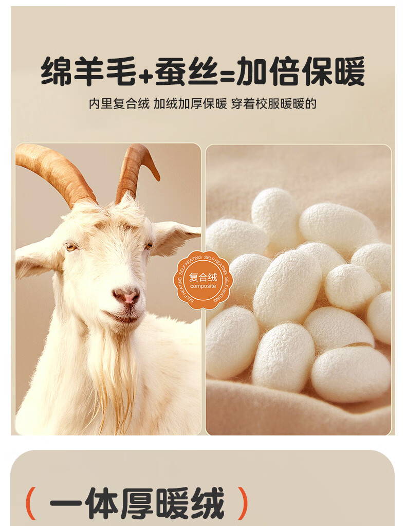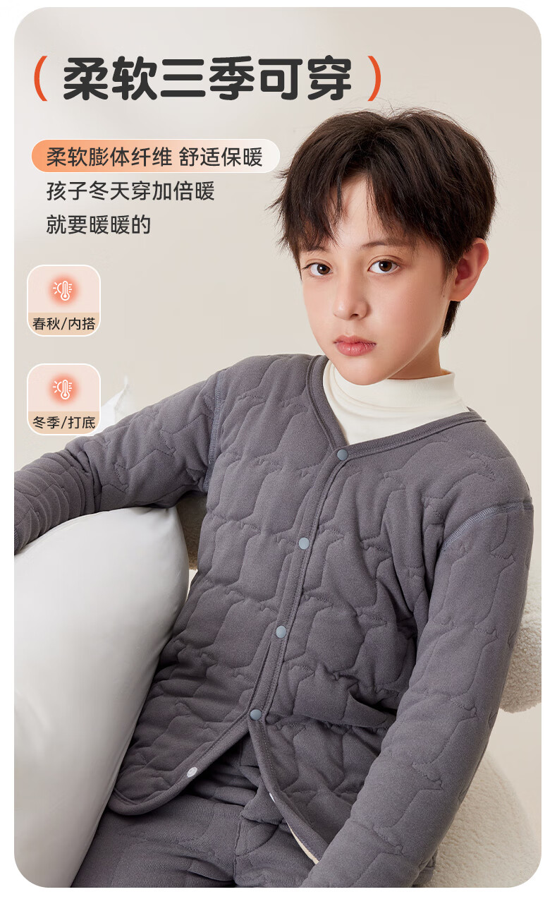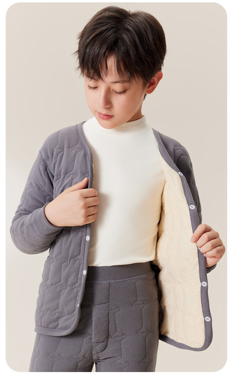 浪莎儿童保暖内衣男童女童秋冬加绒加厚上衣中大童学生校服神器