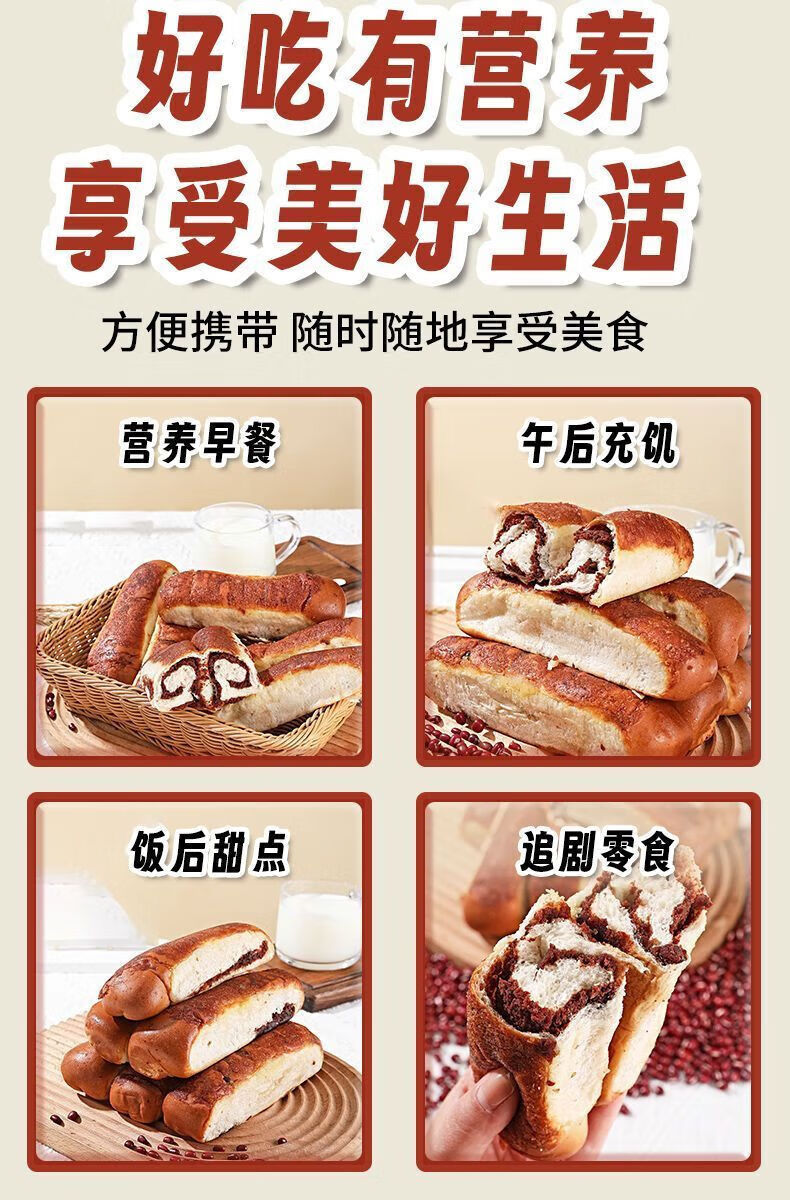 胖i东来七点食分全麦椰香红豆面包 豆沙面包 红豆沙馅夹心椰蓉软 全麦椰香红豆面包50g*4包