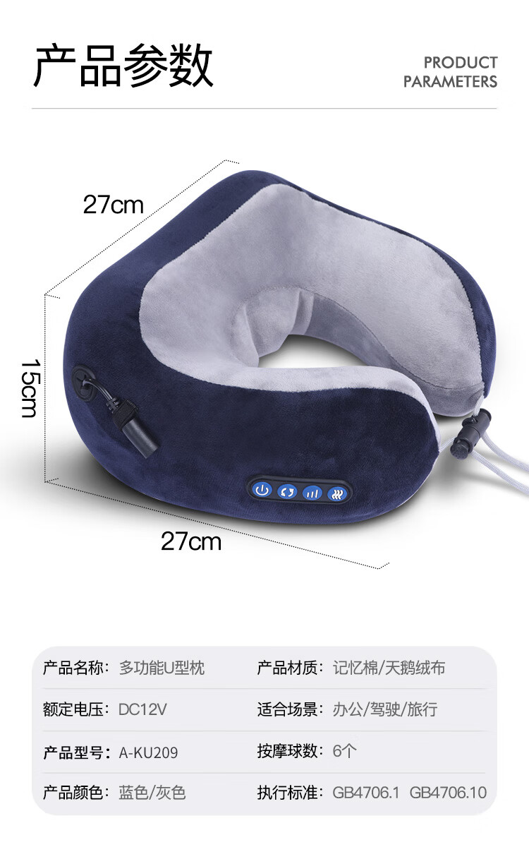 奥鼎康U型颈椎按摩枕颈椎按摩仪颈椎揉捏按摩器护颈枕颈椎呵护送爱人送朋友 U型颈椎按摩枕A-K699