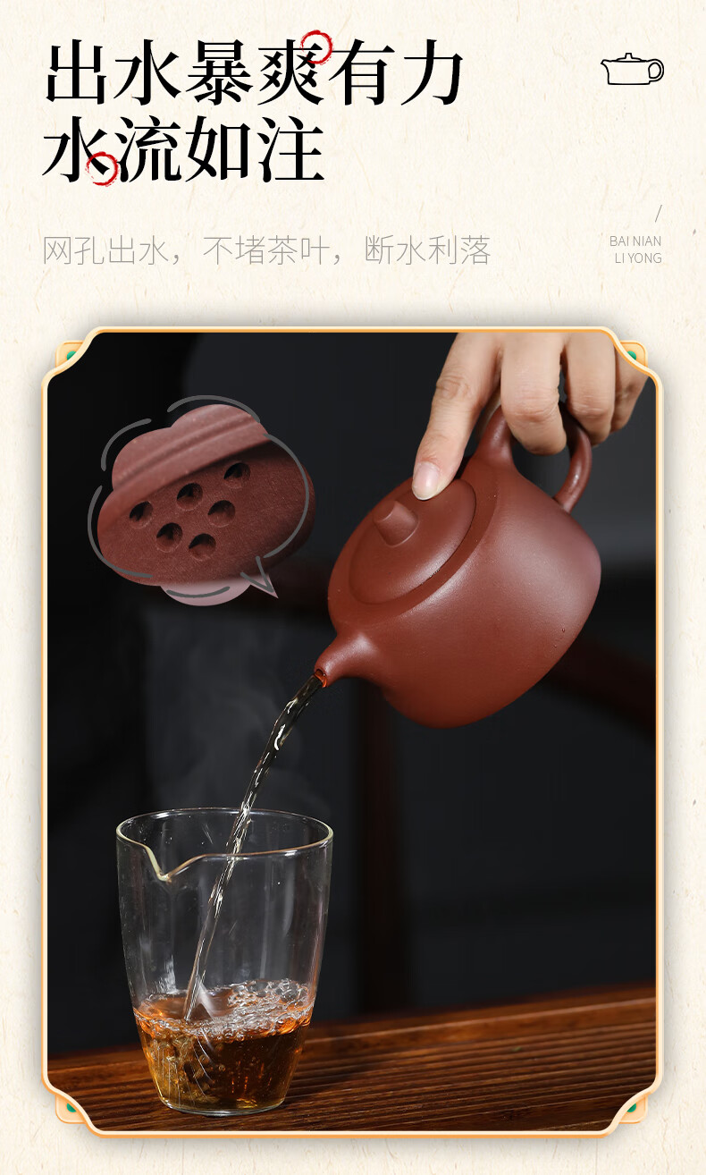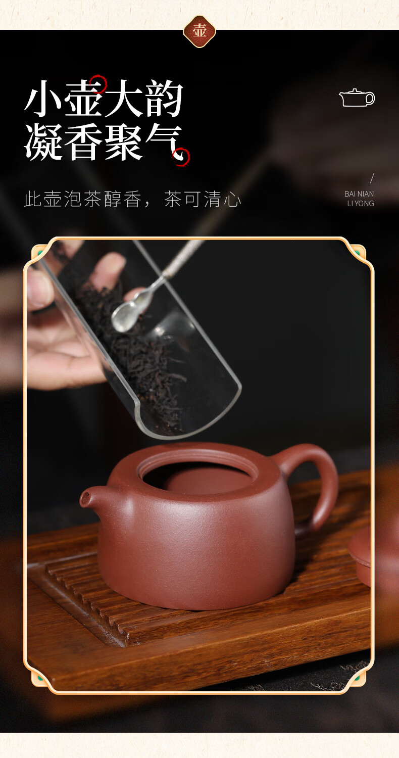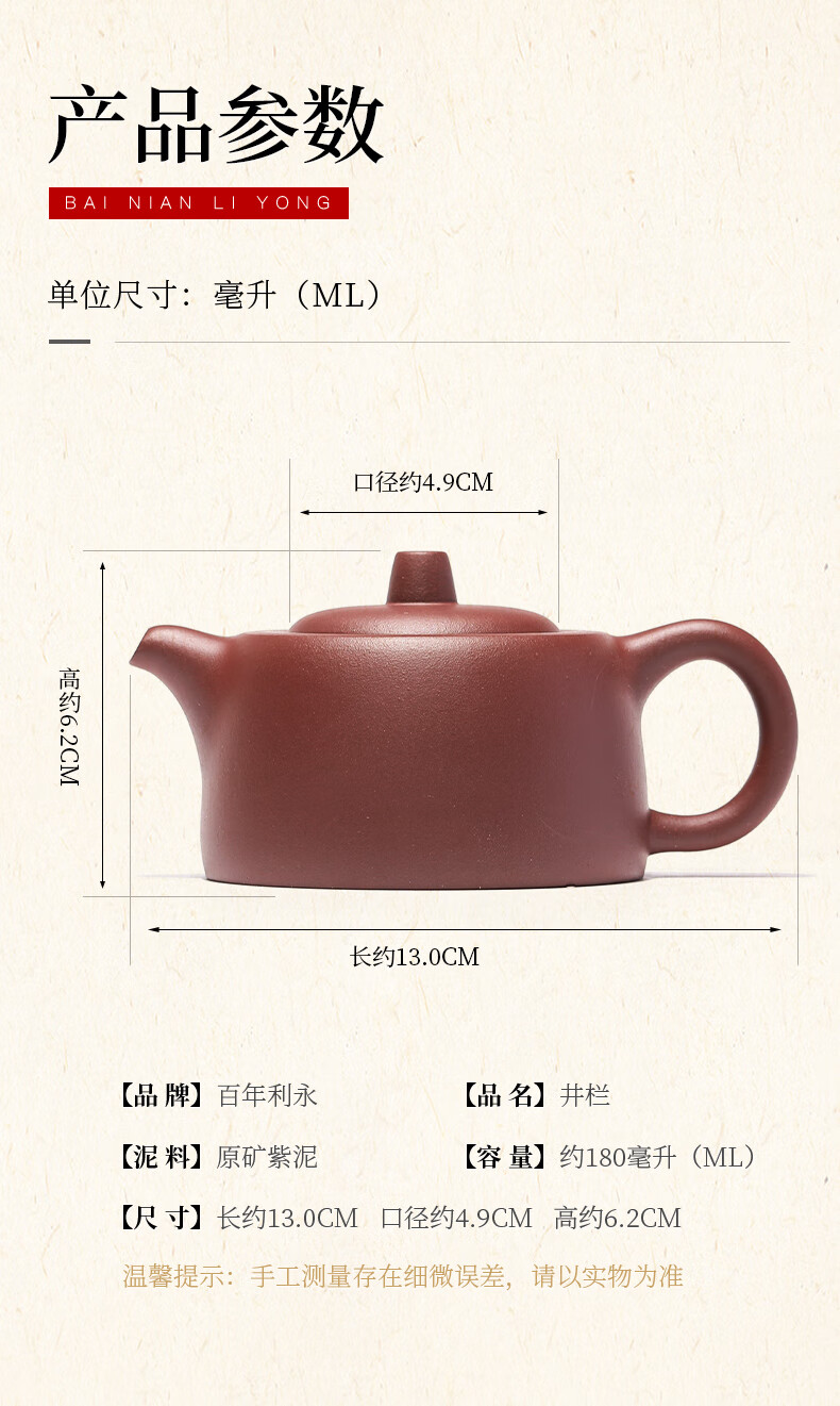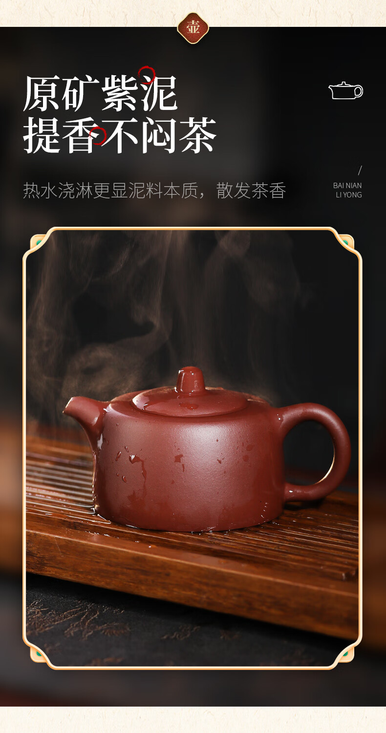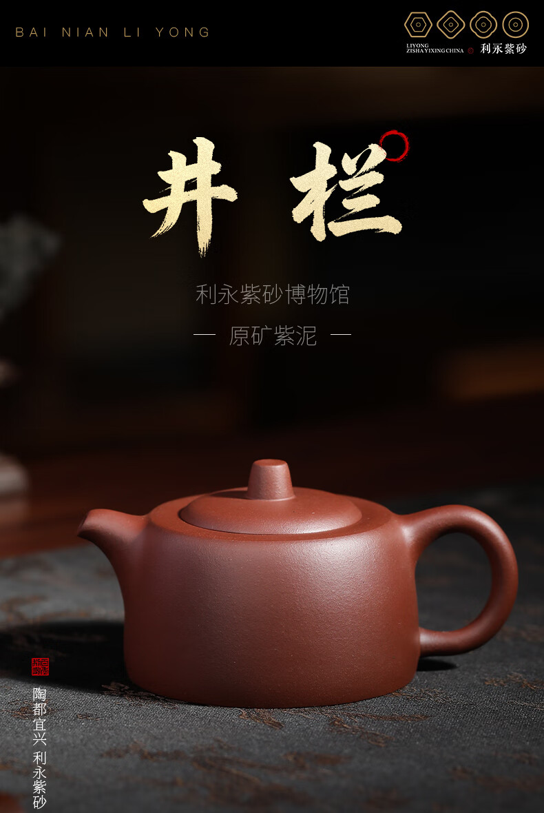 百年利永宜兴紫砂壶纯全手工原矿紫泥井栏壶功夫茶具泡茶壶家用