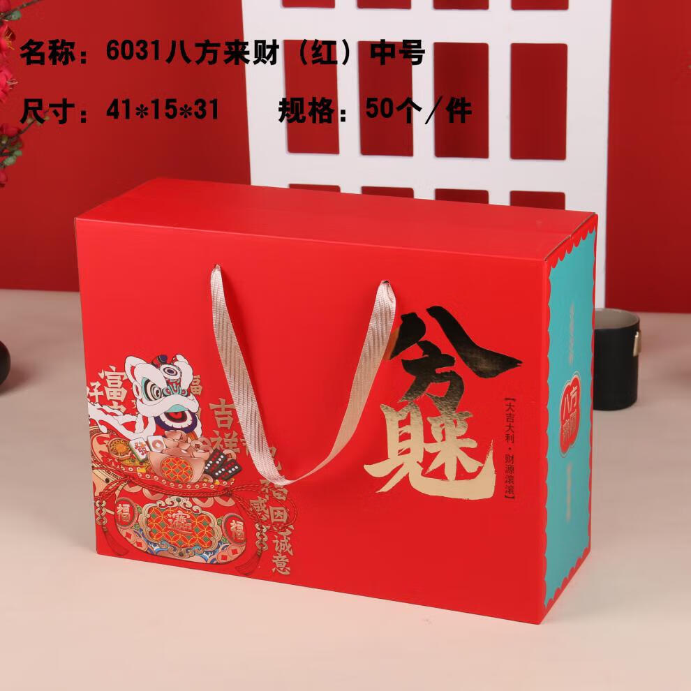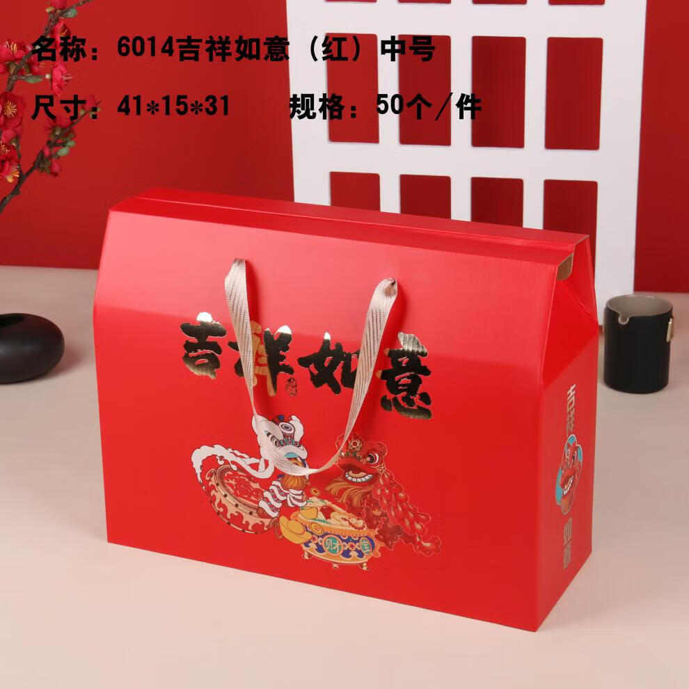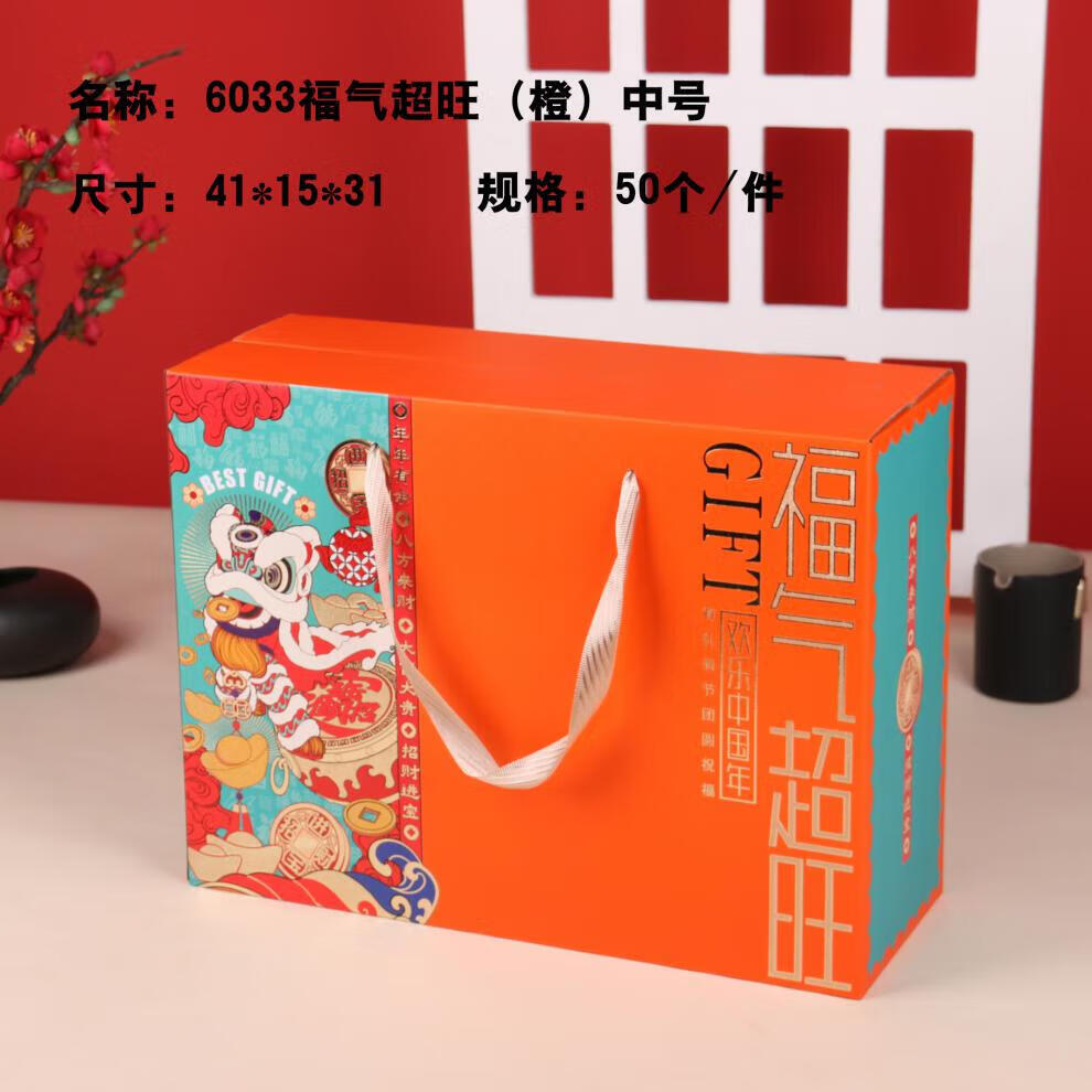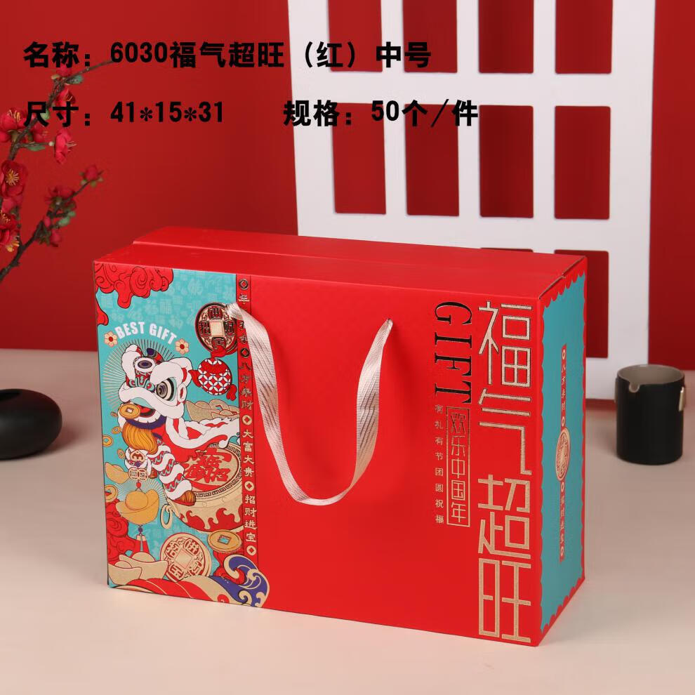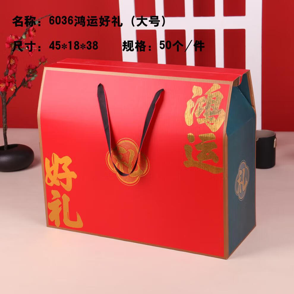 阡囤年货礼盒包装盒空盒特产零食山珍干果手提箱水果通用批发定制 6050福多多(红)大号