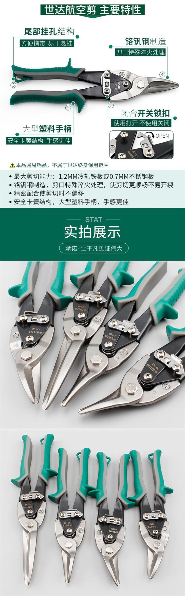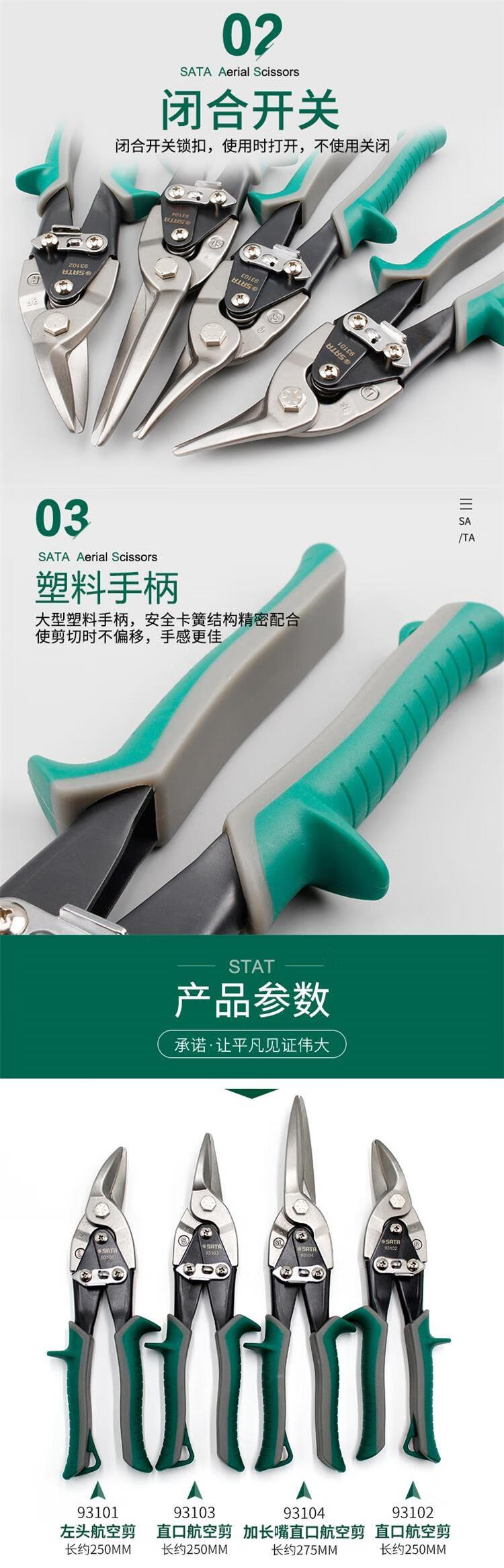 世达(SATA)铁皮剪刀工业剪强力多功能铁皮剪专用龙骨剪子集成吊顶航空剪 93101A 左头航空剪(剪左弧线)