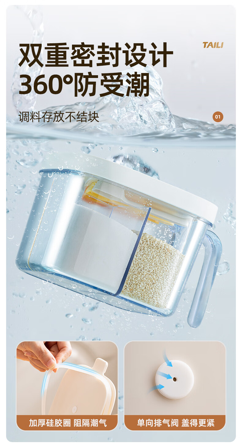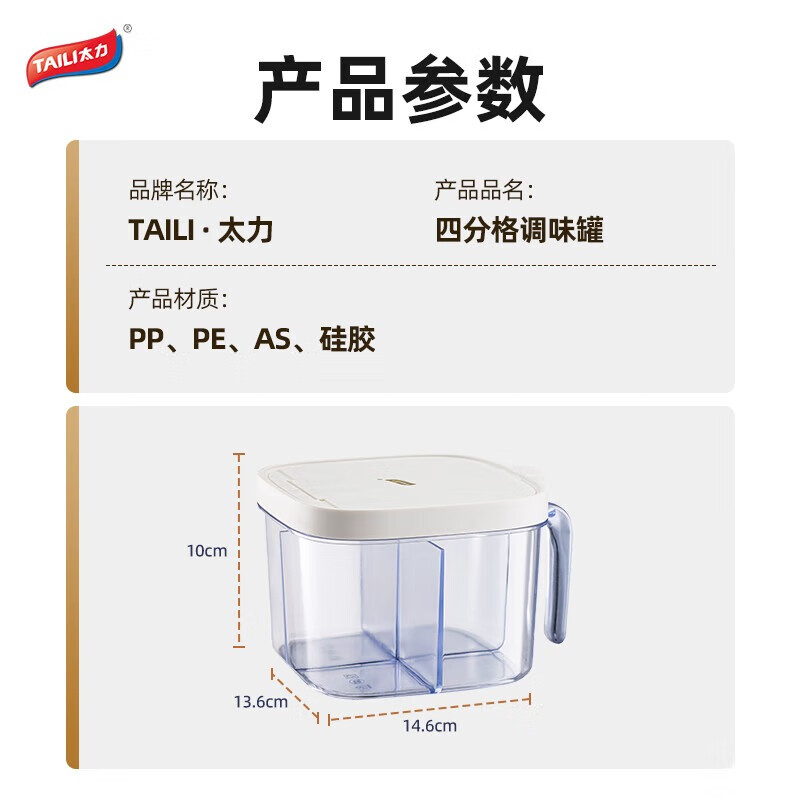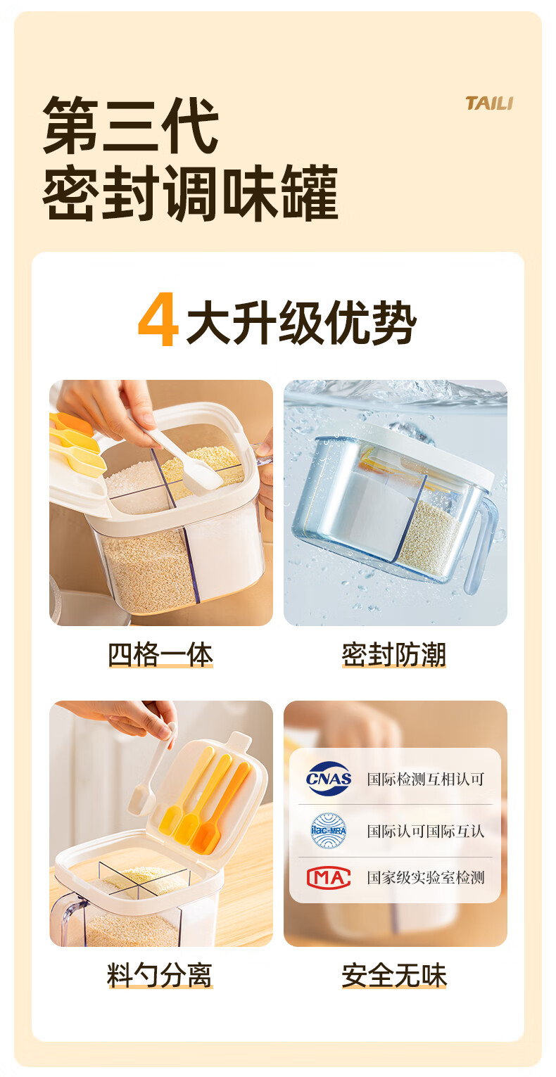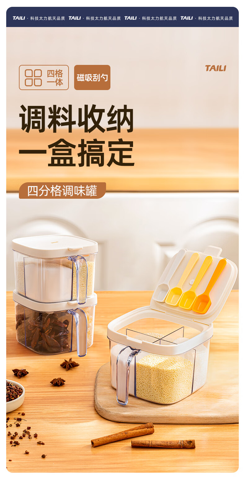 太力调料罐 调味盒 家用佐料味精罐盐罐糖罐多格收纳密封磁吸4分格