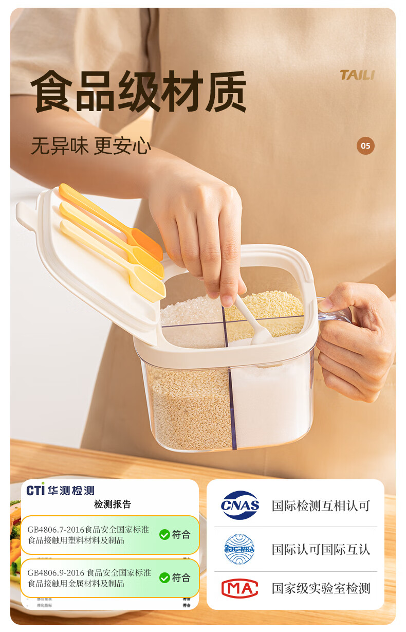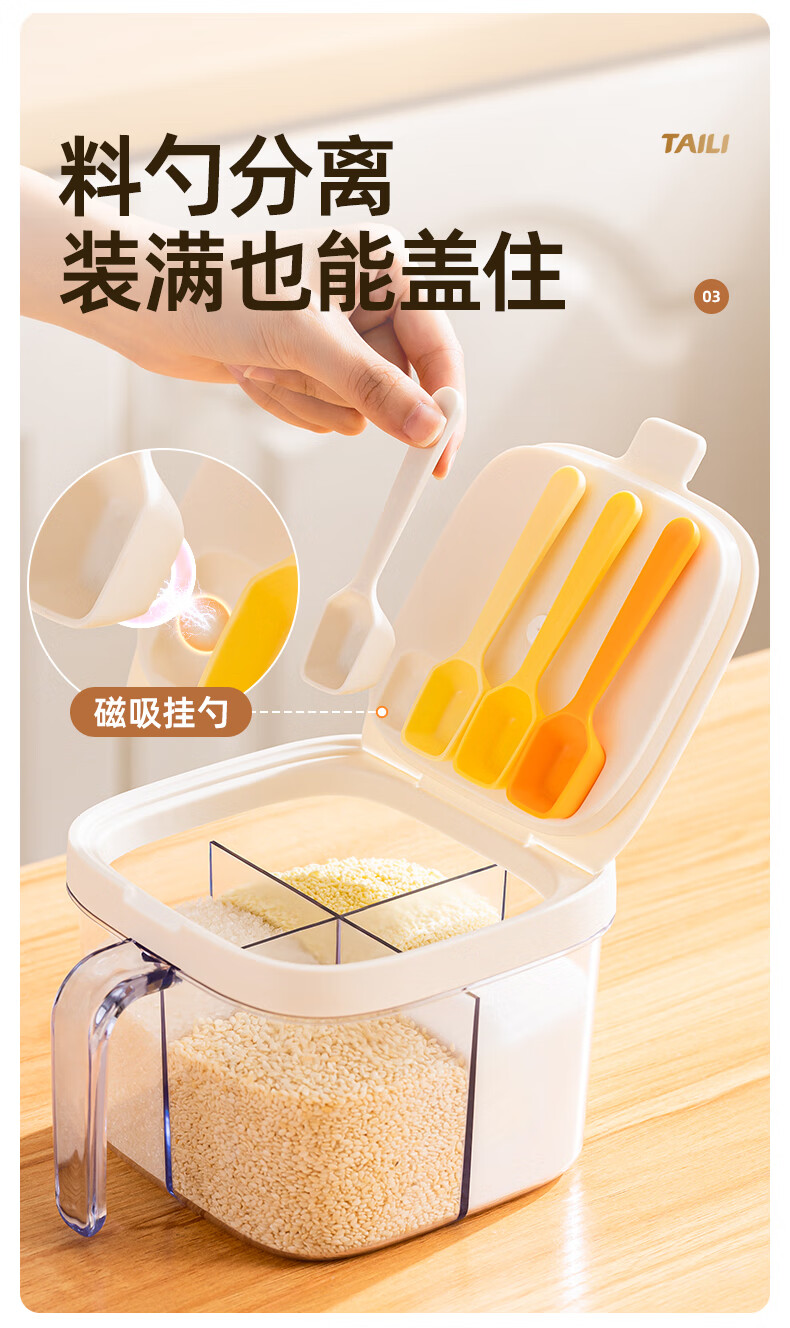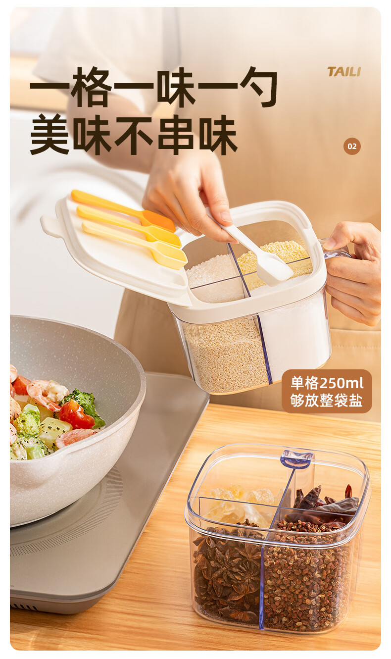 太力调料罐 调味盒 家用佐料味精罐盐罐糖罐多格收纳密封磁吸4分格