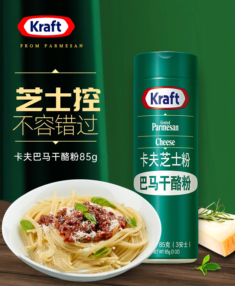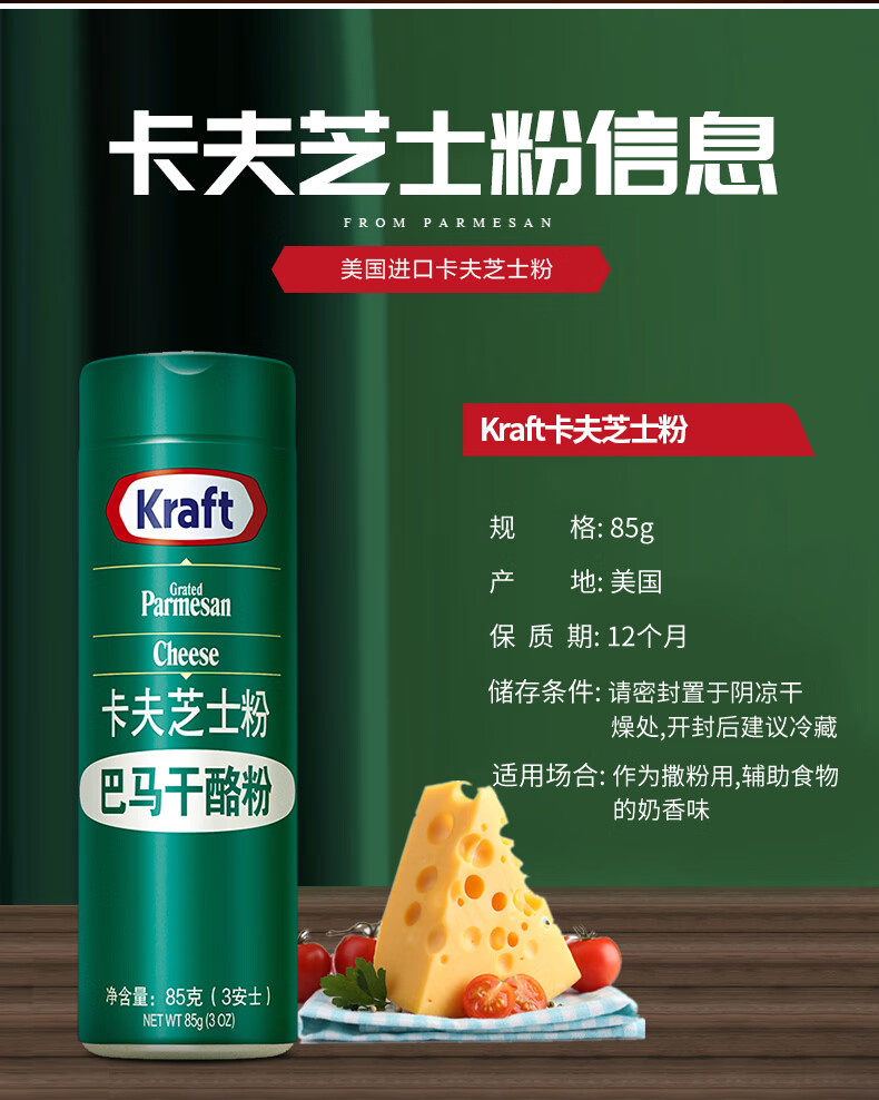 卡夫美国原装进口卡夫芝士粉85g*2瓶 披萨饼意大利面烘焙干酪粉撒料奶 2瓶装*85g