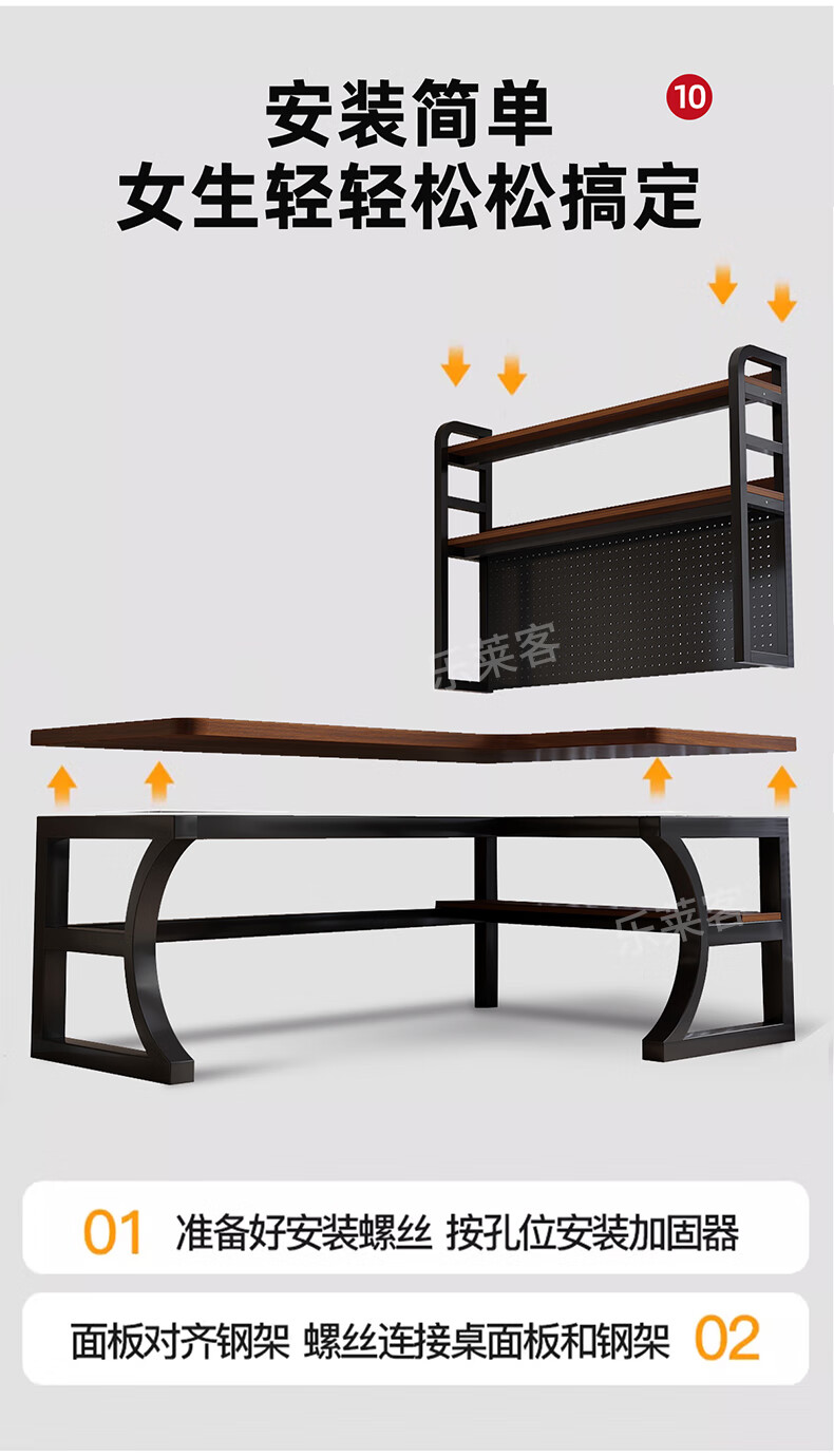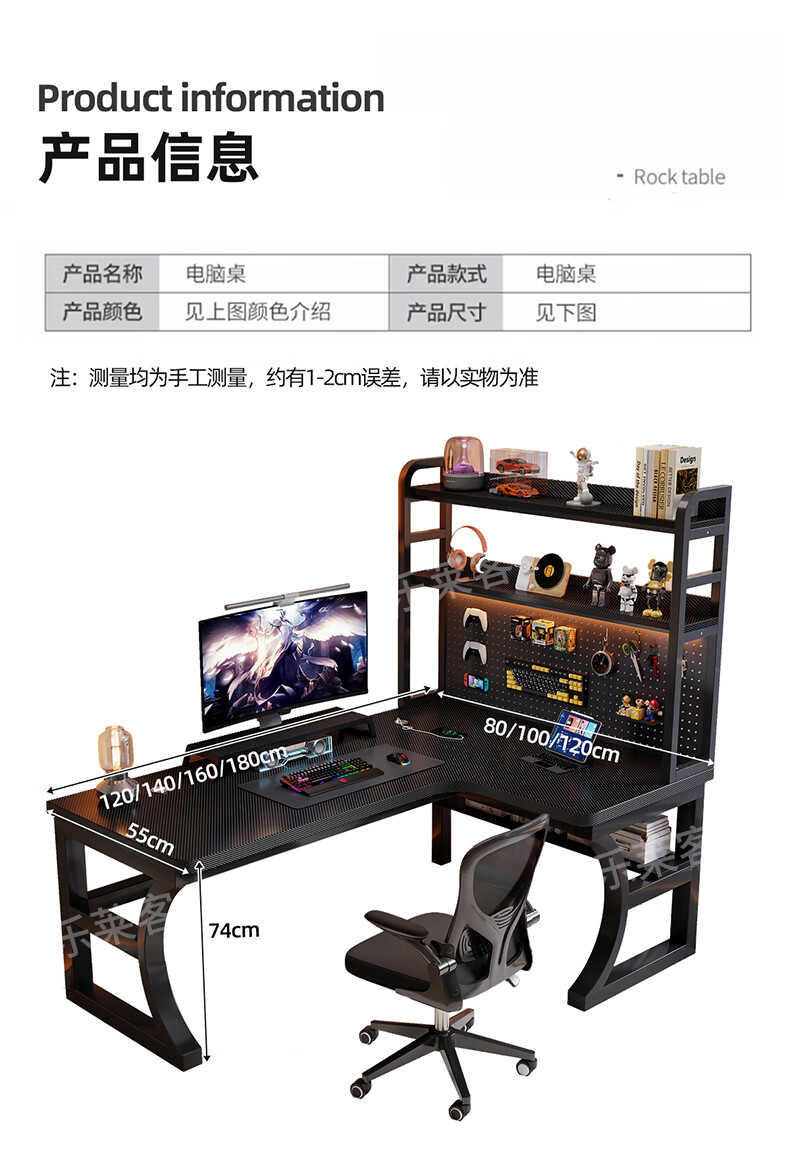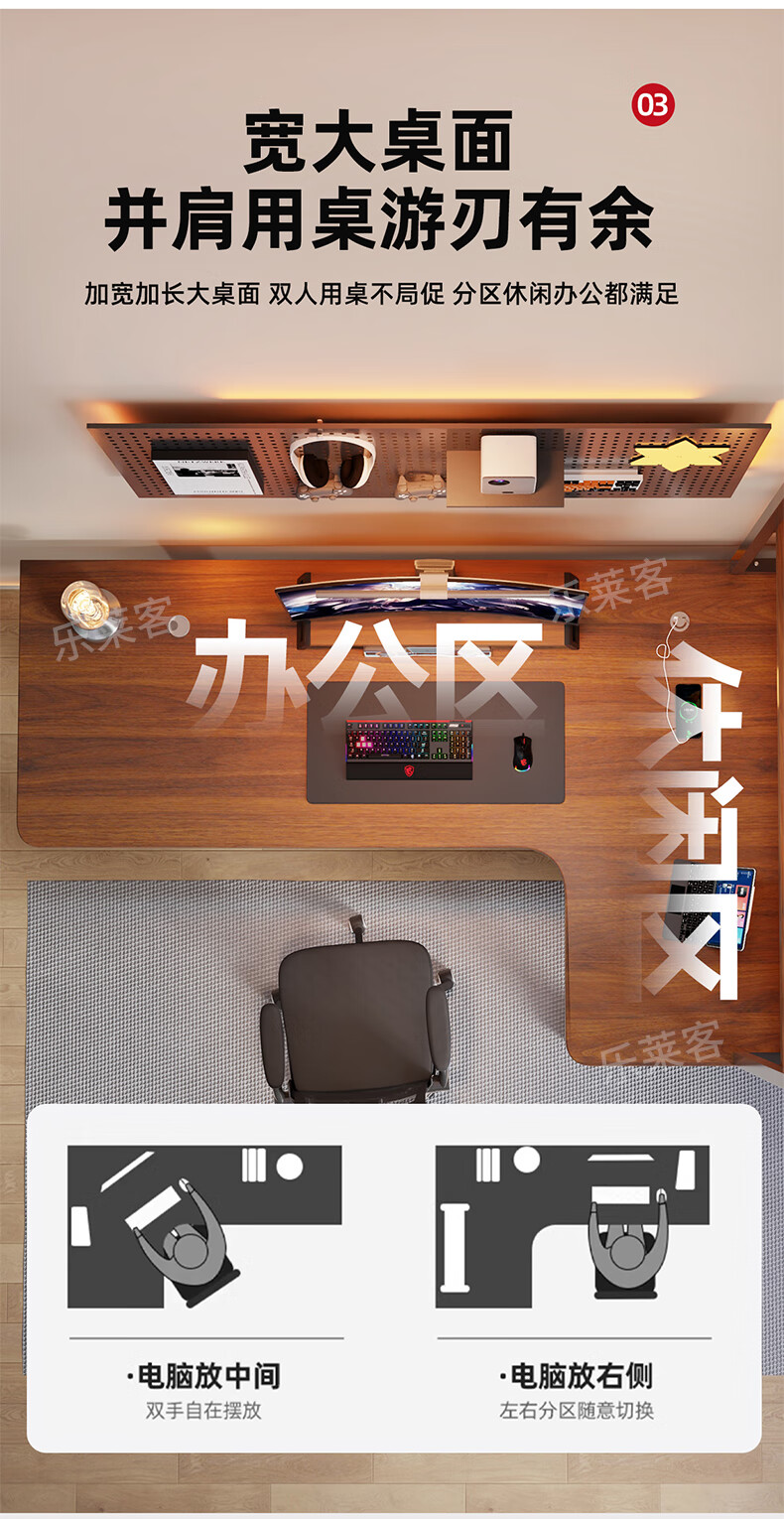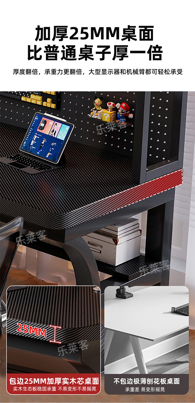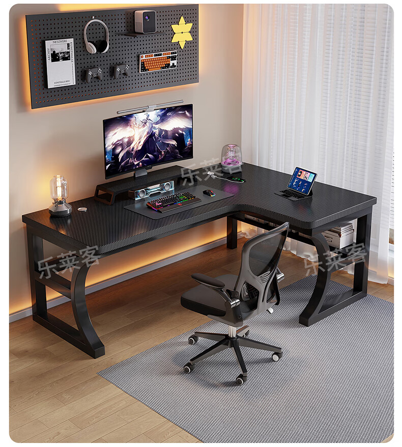 乐莱客实木转角电脑桌台式书桌书架一体双人电竞桌拐角学习办公桌 25mm实木桌面+洞洞板书架【胡桃色+白架】左转 140*80*74cm