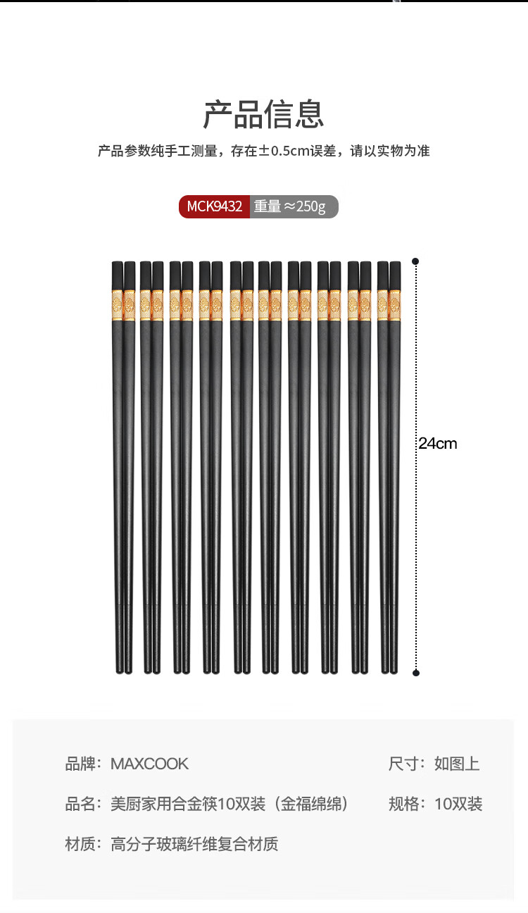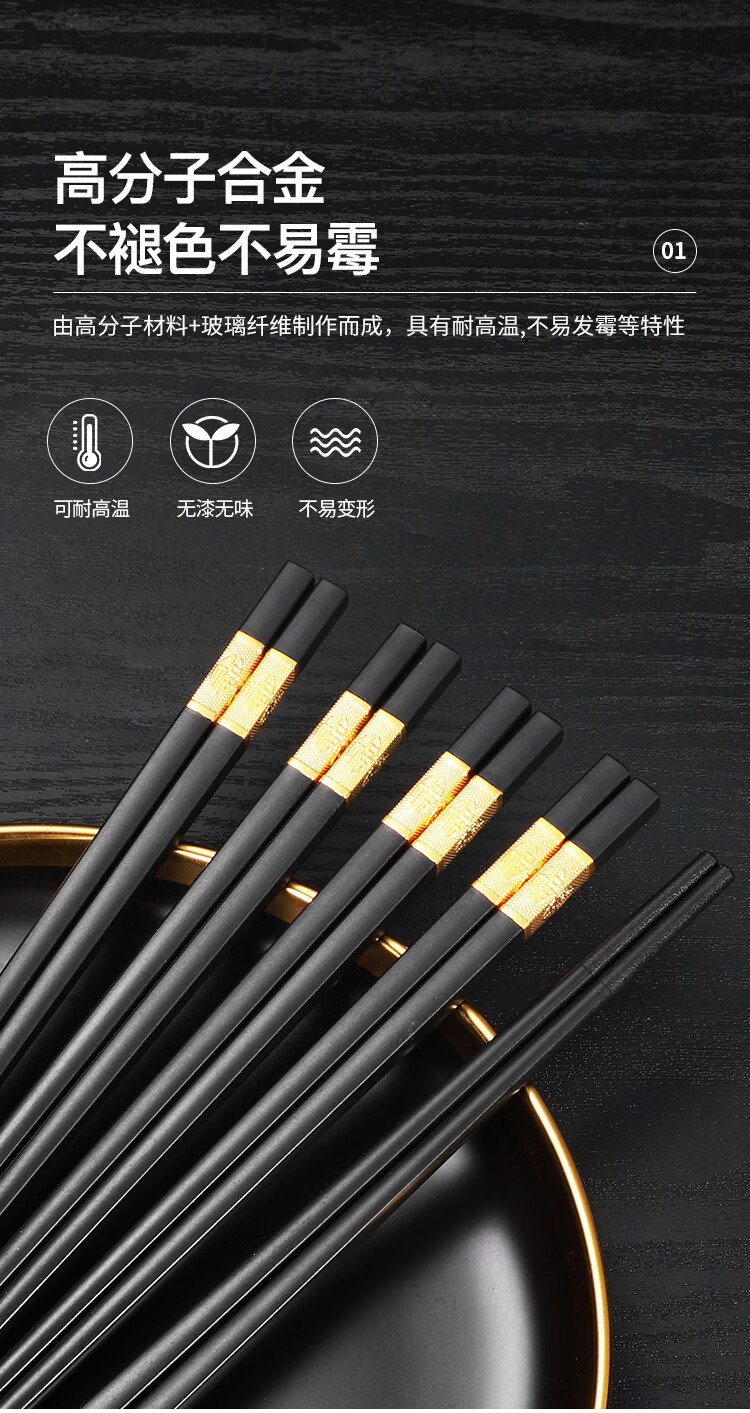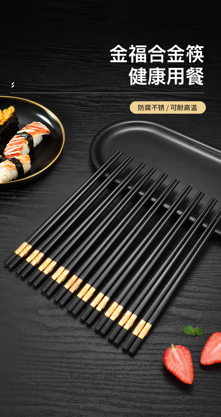 美厨(MAXCOOK)筷子合金筷 10双装 不锈不易发霉耐高温家用防滑筷子 金福MCK9432