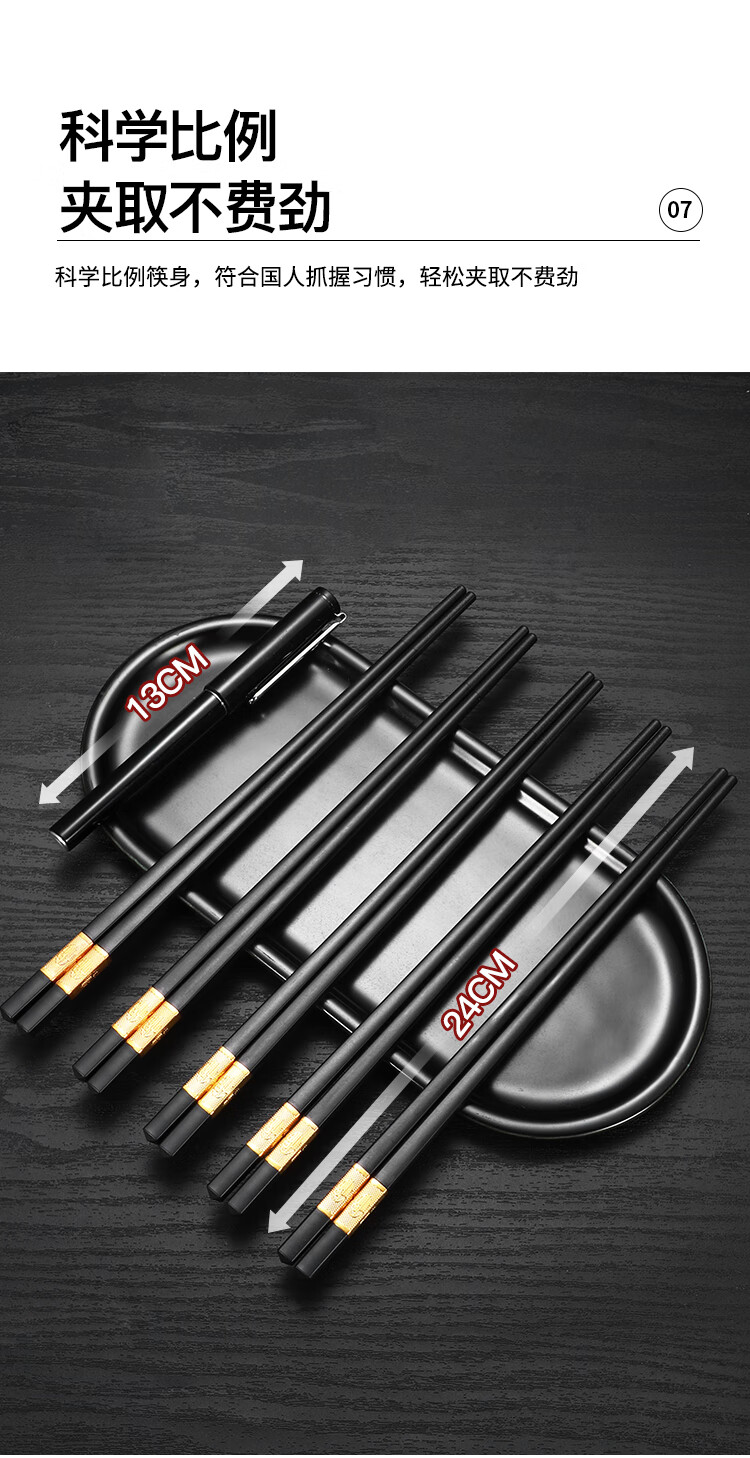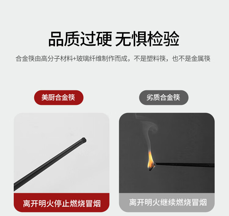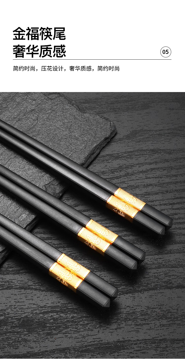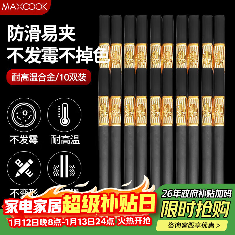 美厨(MAXCOOK)筷子合金筷 10双装 不锈不易发霉耐高温家用防滑筷子 金福MCK9432