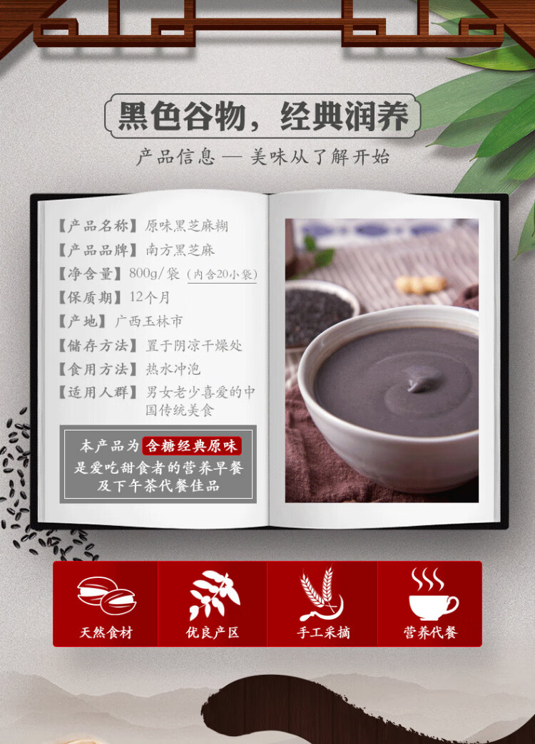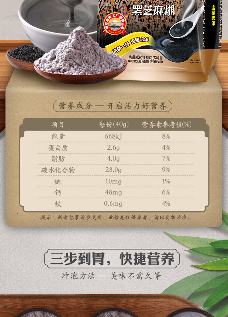 南方黑芝麻 原味黑芝麻糊800g(40g*20小袋)冲饮谷物 【新老包装随机发货】