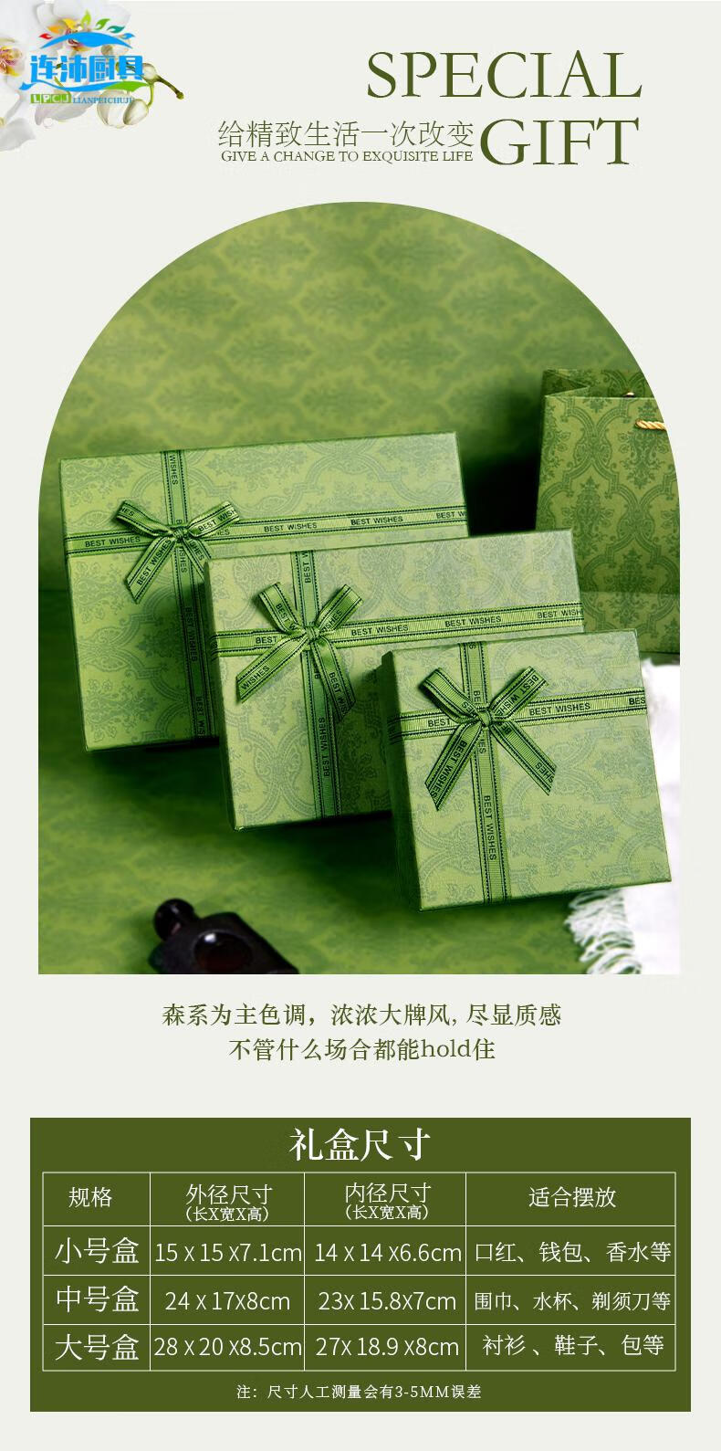 2025新款高级仪式感520表白生日礼盒空盒礼物盒空盒送男女朋友 古奇绿空盒 1号15*15*7.1cm