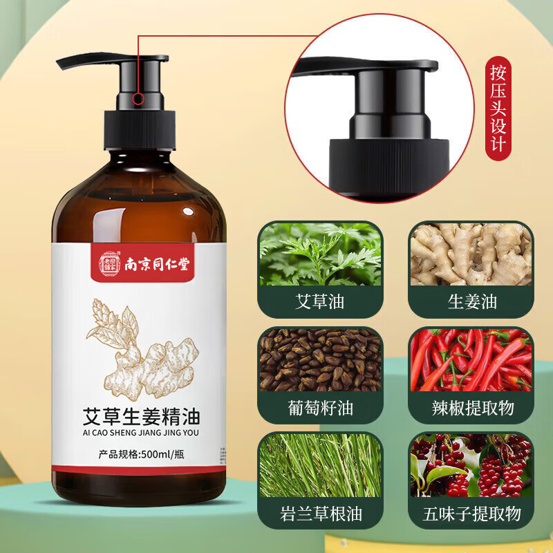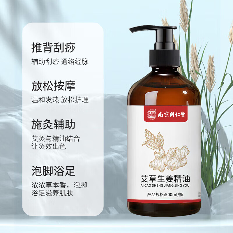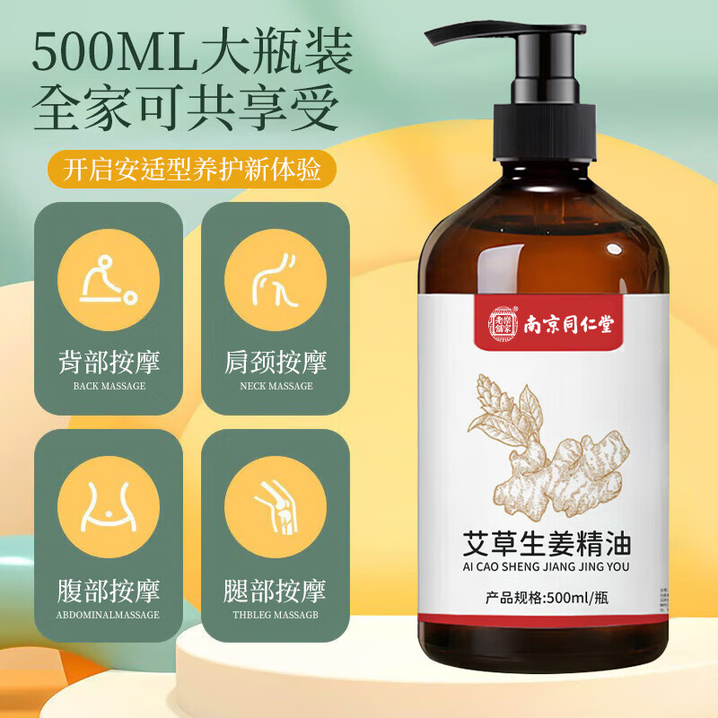 乐家老铺南京同仁堂生姜艾草按摩精油刮痧拔罐开背推拿spa通经络全身发热 1瓶/500ml
