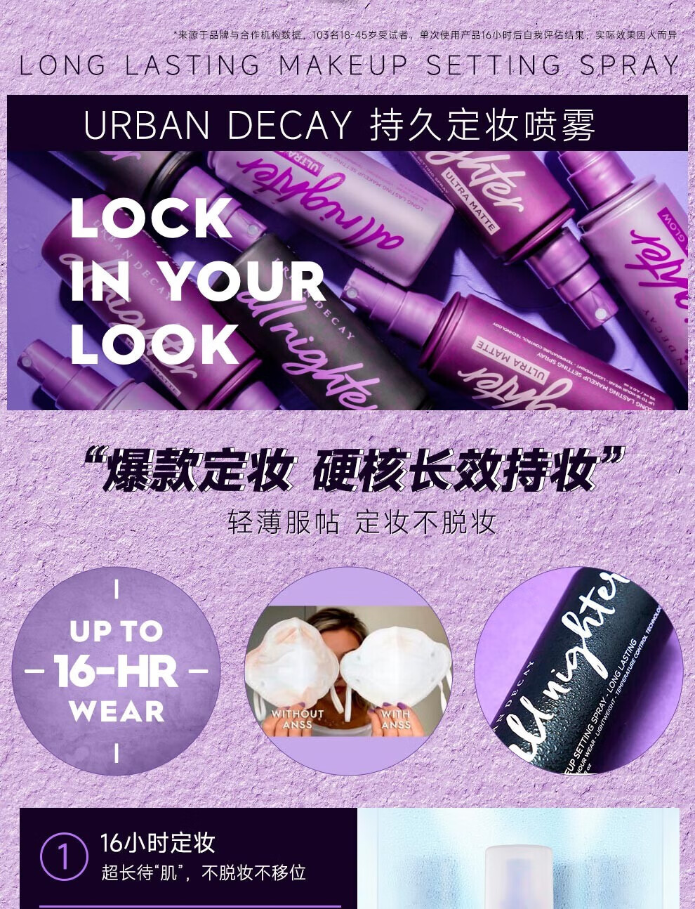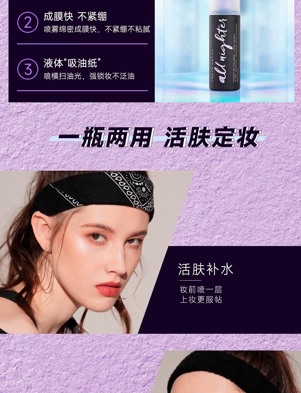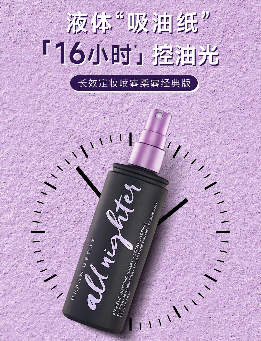 Urban Decay衰败城市ud定妆喷雾小样ALL NIGHTER持续耐久控油高效保湿经典款 15ml*2瓶【旅行装】