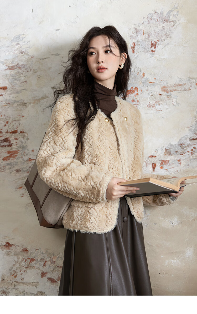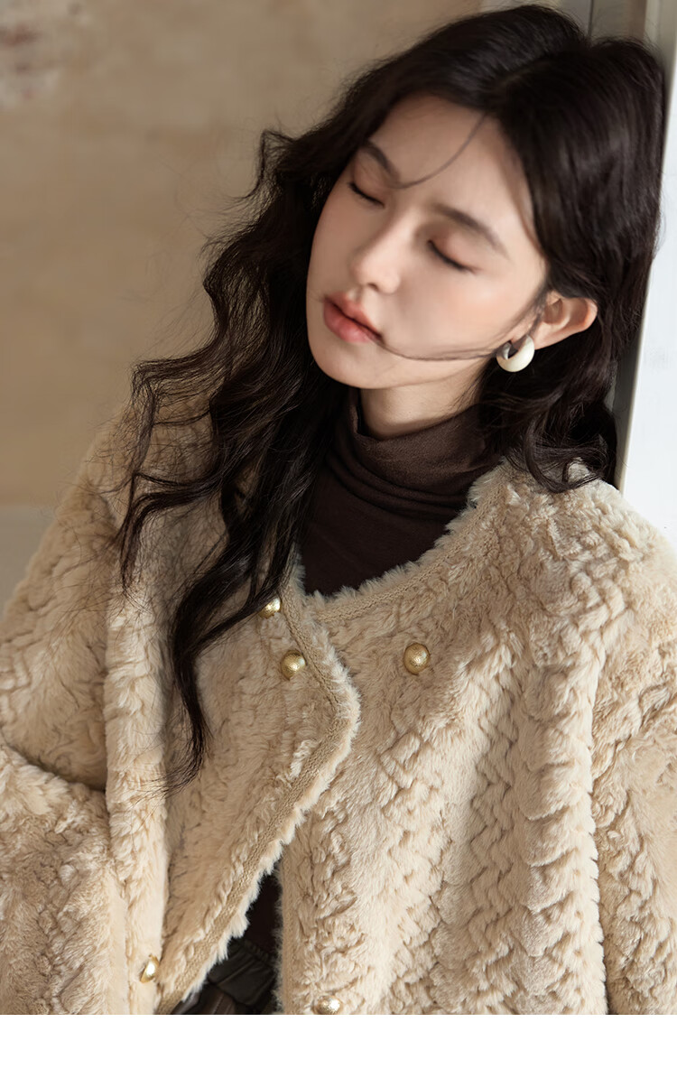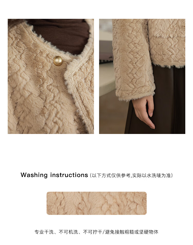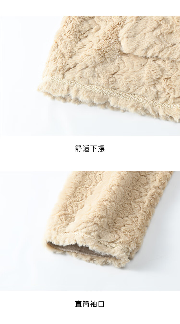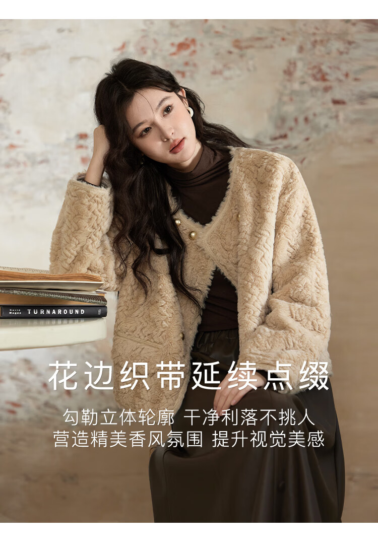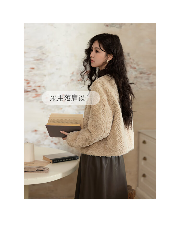 谜秀小香风仿兔毛羊羔毛外套2025冬皮毛一体加厚保暖长袖 杏色外套 L