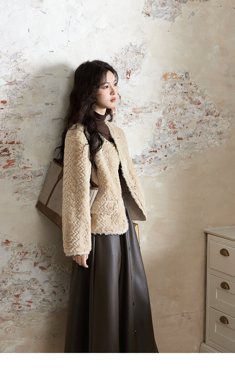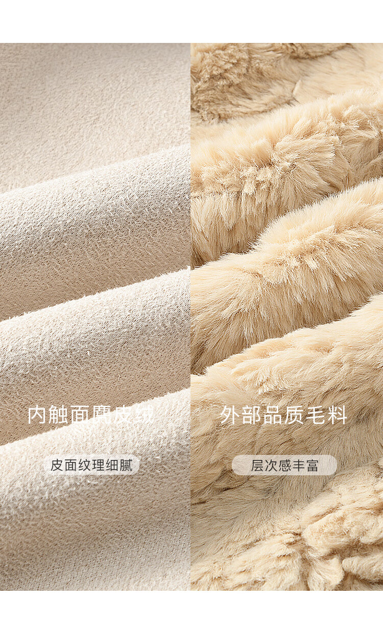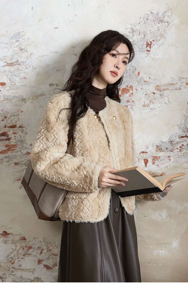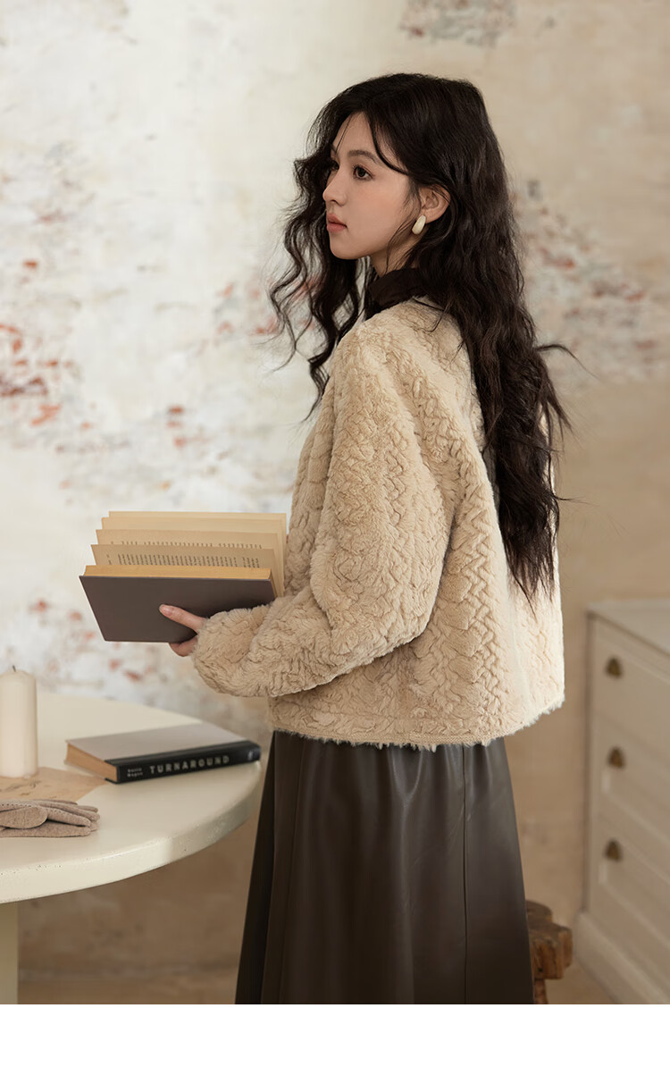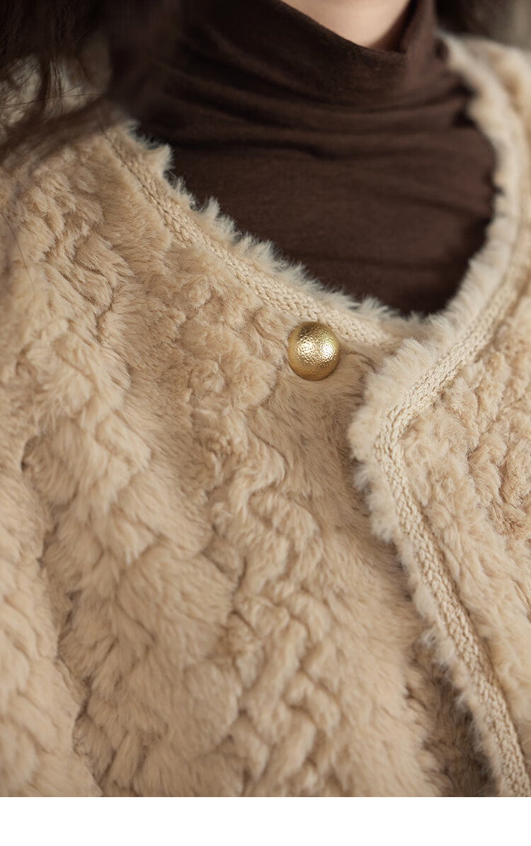 谜秀小香风仿兔毛羊羔毛外套2025冬皮毛一体加厚保暖长袖 杏色外套 L