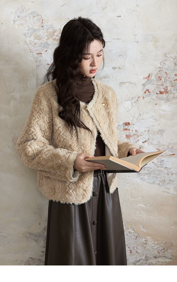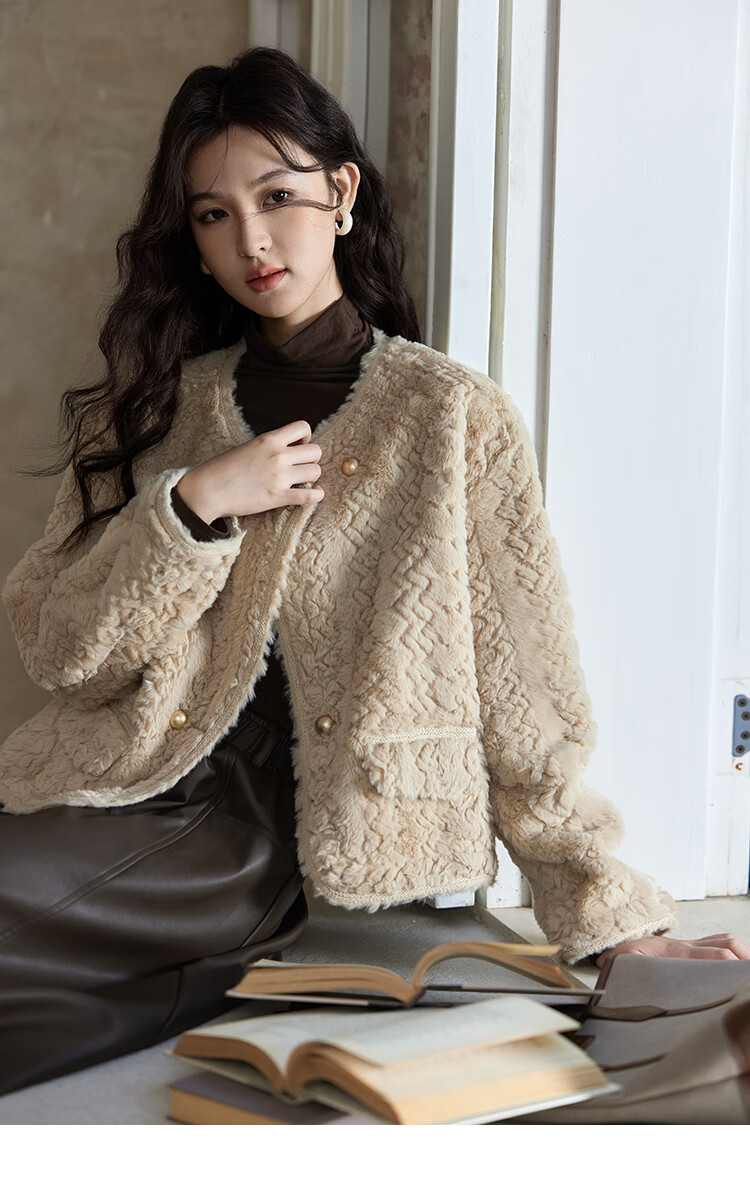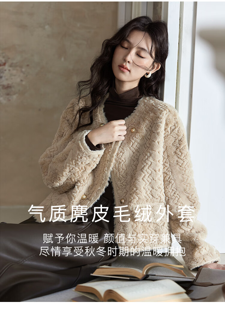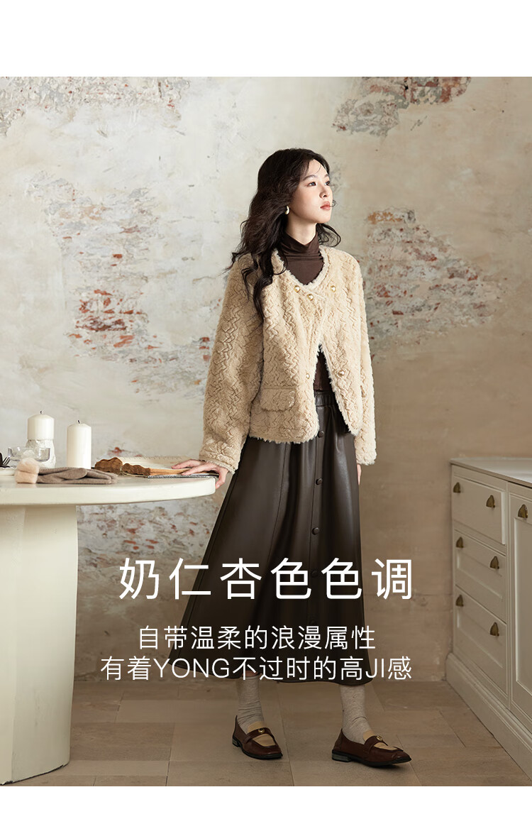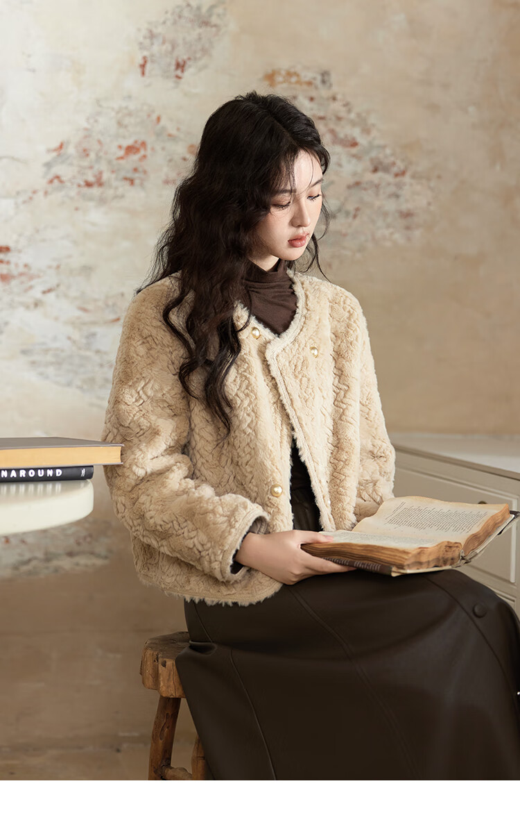 谜秀小香风仿兔毛羊羔毛外套2025冬皮毛一体加厚保暖长袖 杏色外套 L