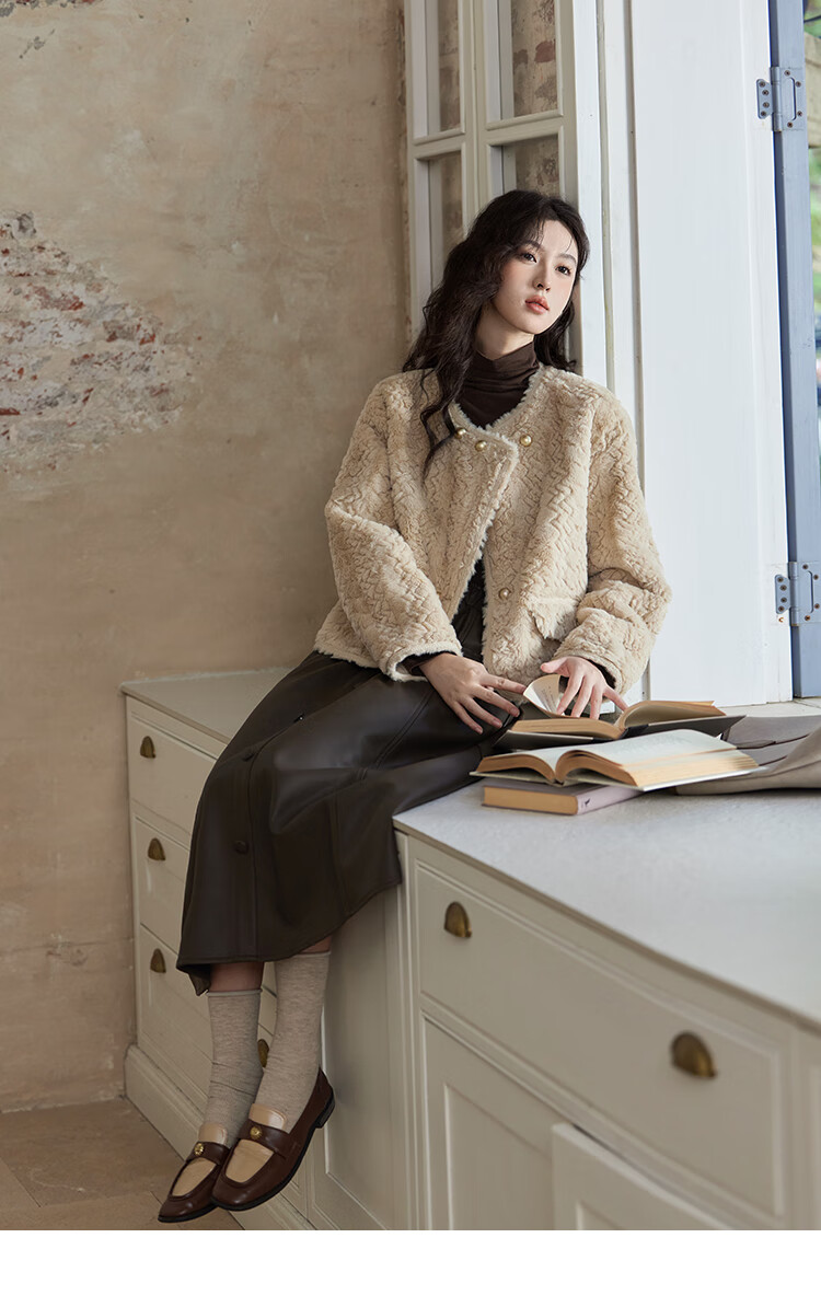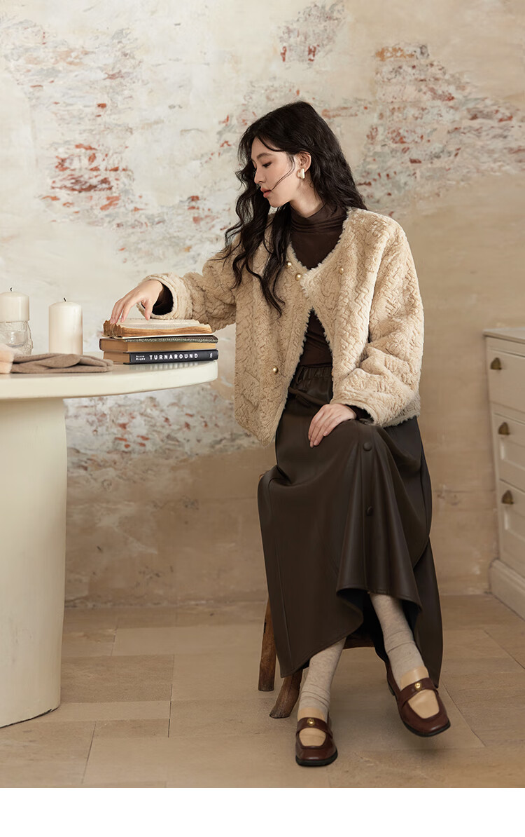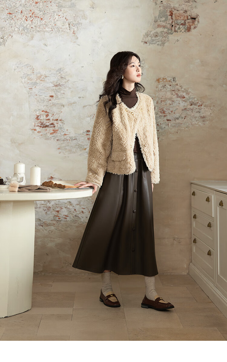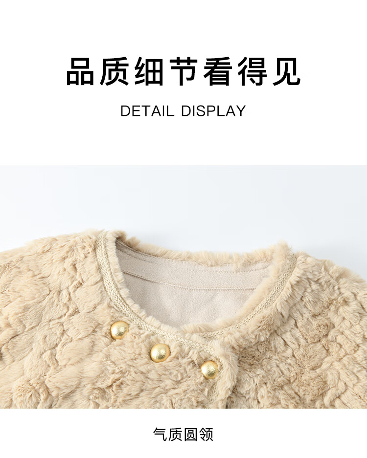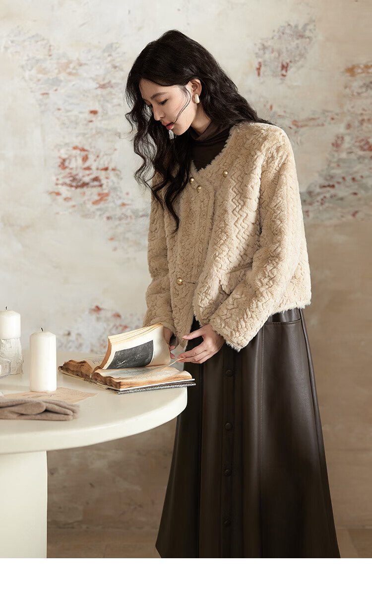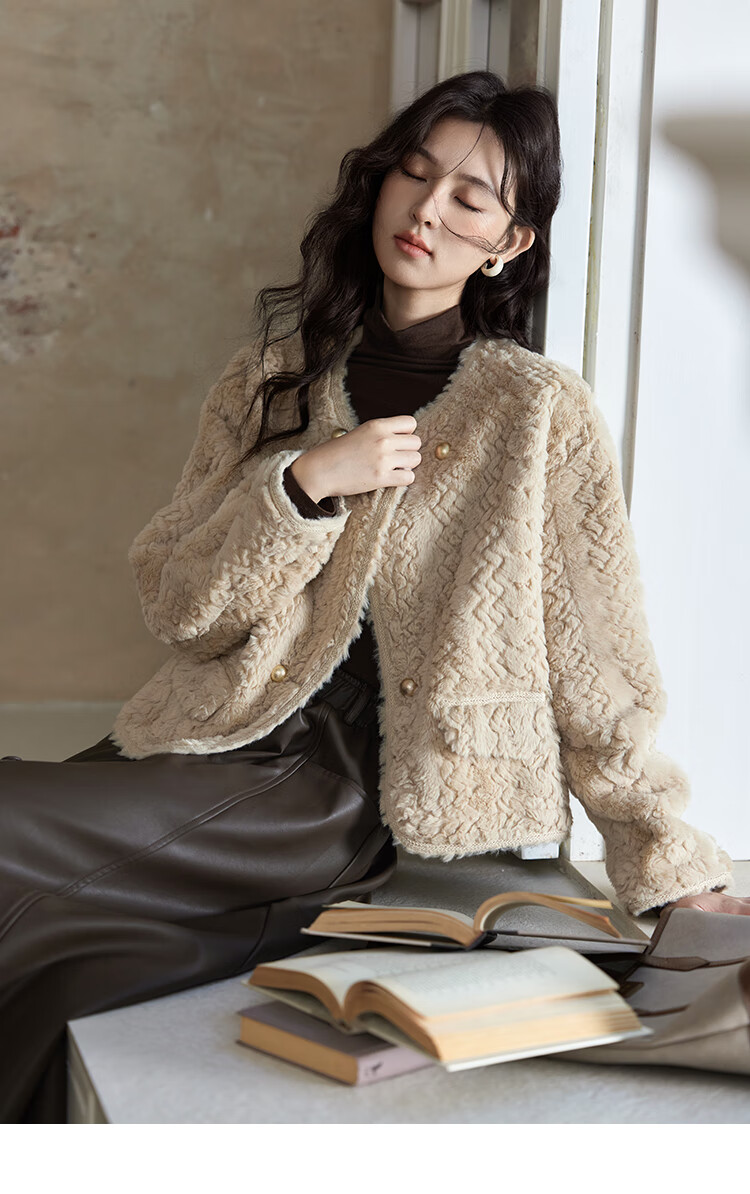 谜秀小香风仿兔毛羊羔毛外套2025冬皮毛一体加厚保暖长袖 杏色外套 L