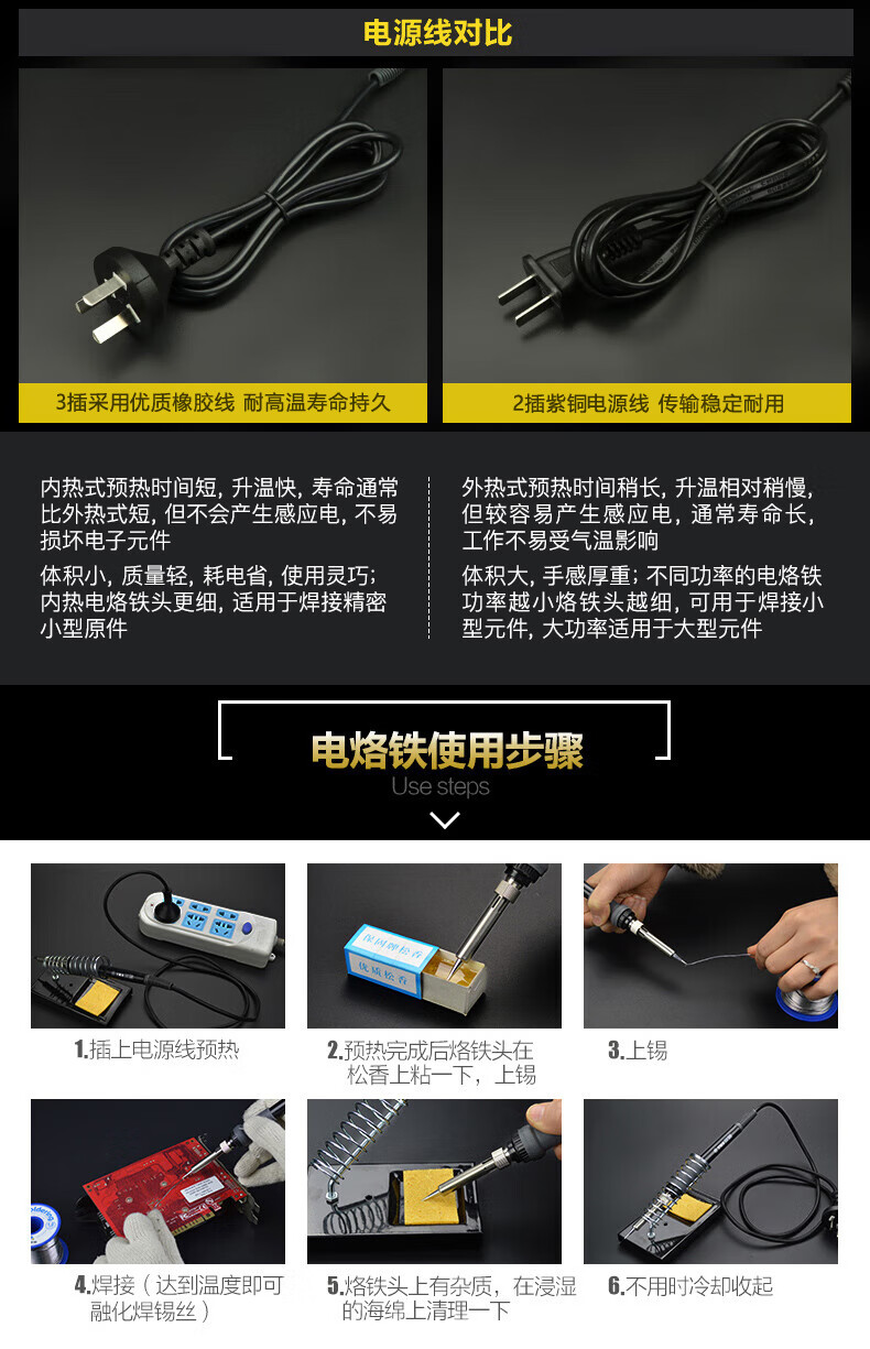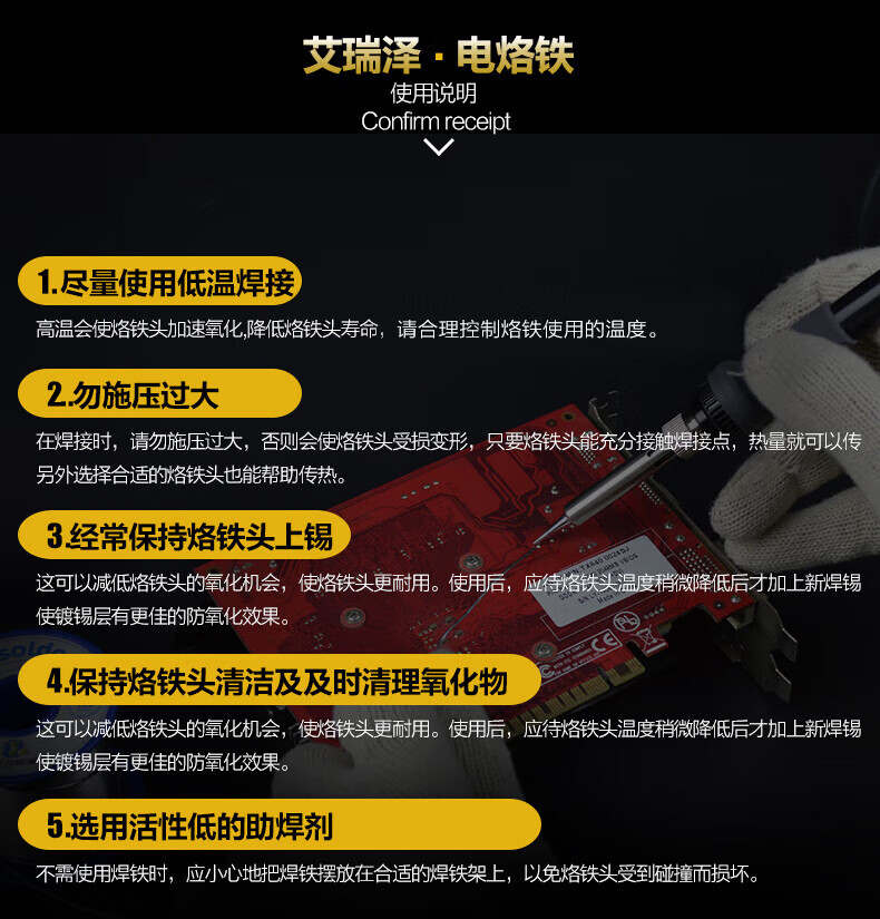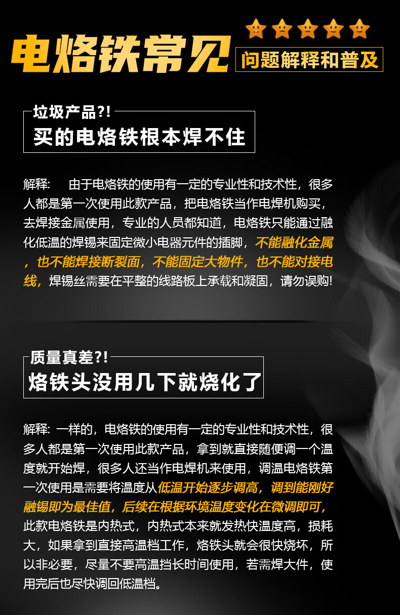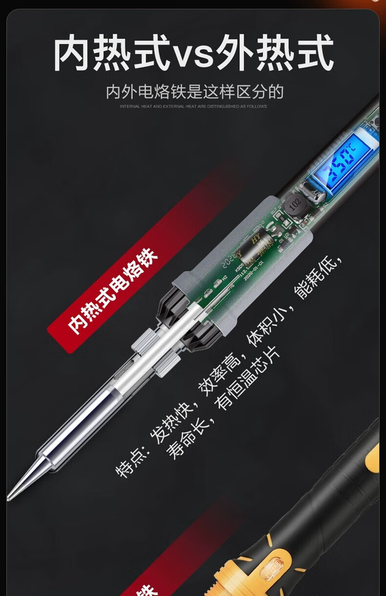 艾瑞泽电烙铁可调温 60W内热式恒温电洛铁套装电焊笔 6件套含修复膏