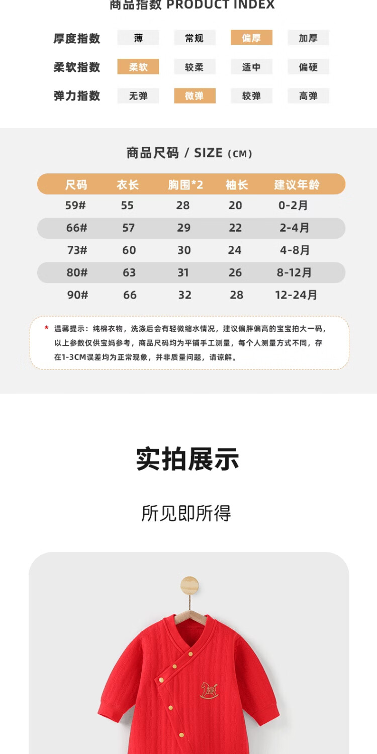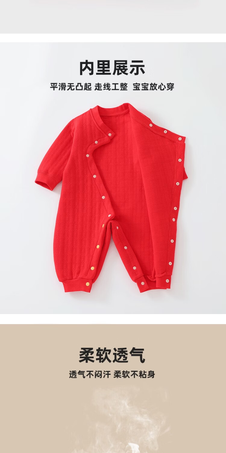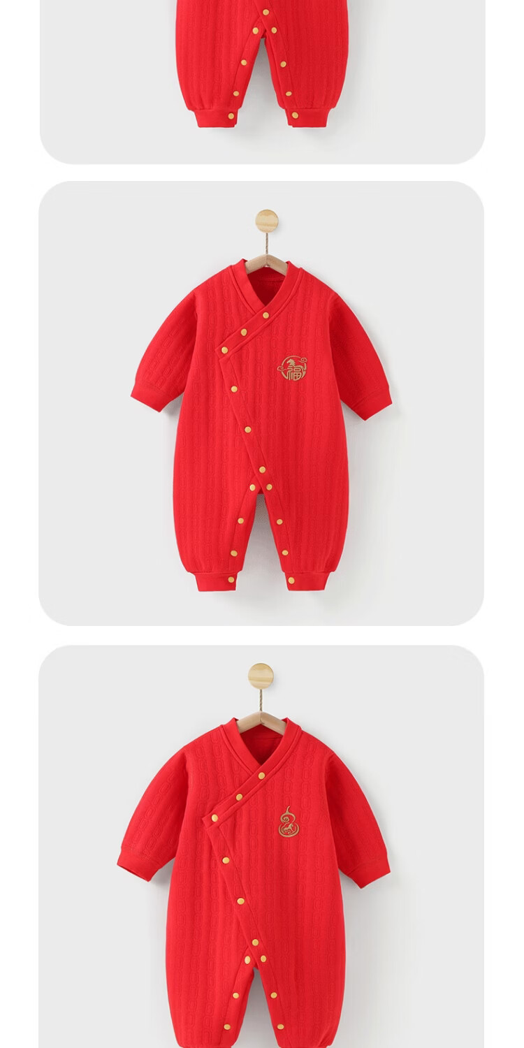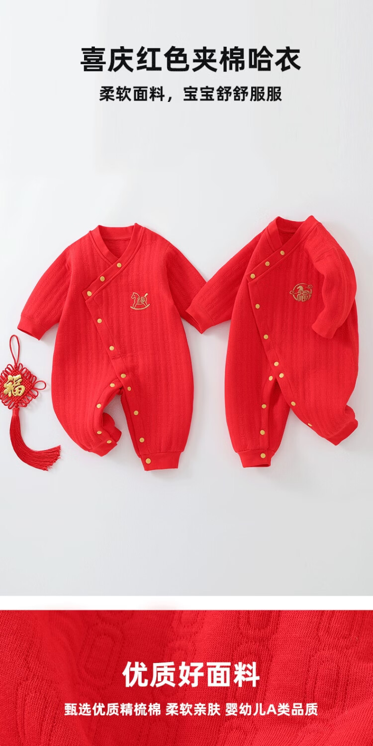 婧麒(JOYNCLEON)新生婴儿连体衣冬季拜冬年服斜襟哈衣宝宝爬服婴幼儿打底夹棉 马运金财 59cm 【1-3月建议体重3.5-6.9kg】