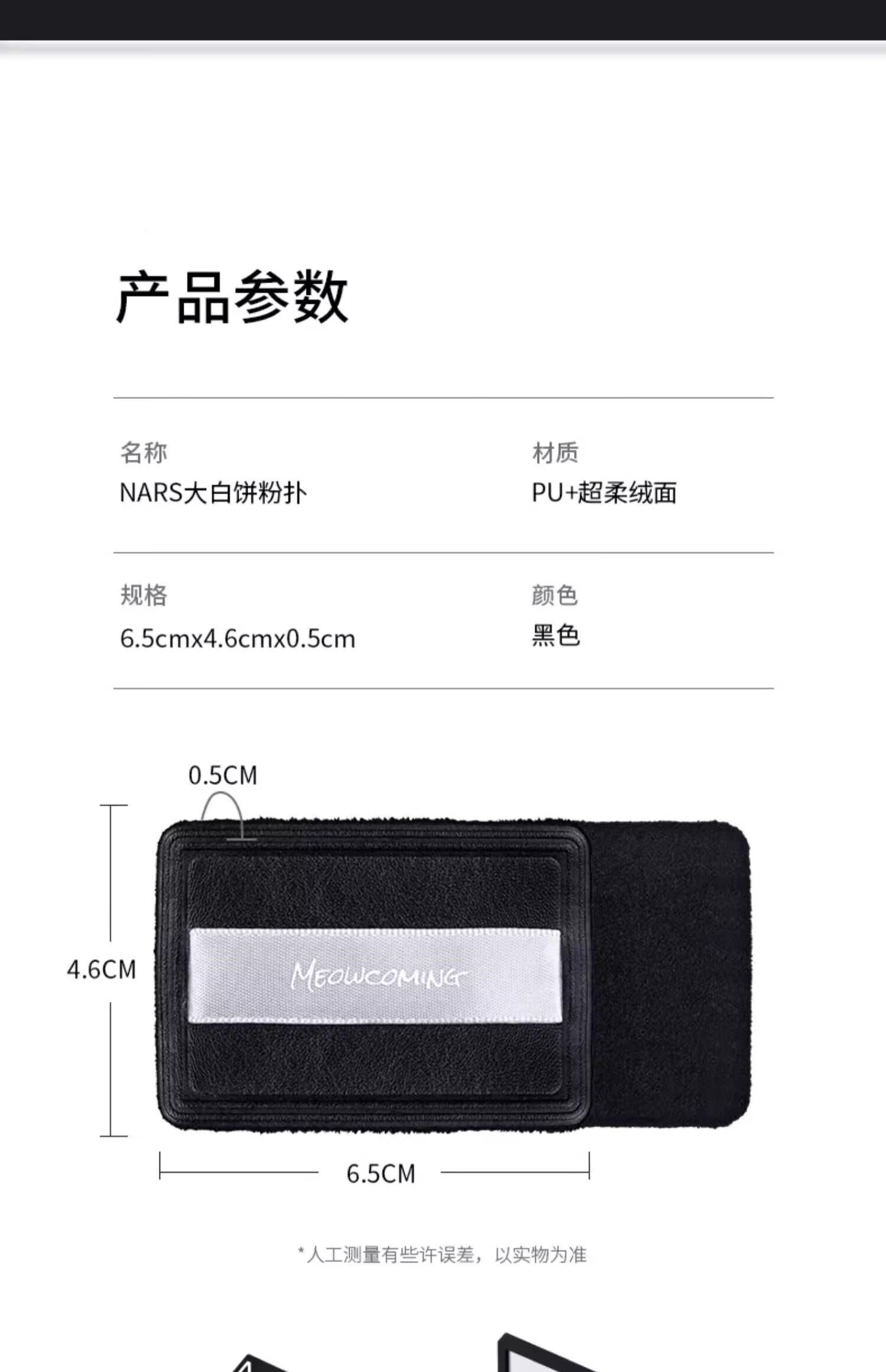 美泰彤narrs大白饼粉扑替换2只 植绒粉扑黑色纳斯定妆粉饼散粉专用超薄