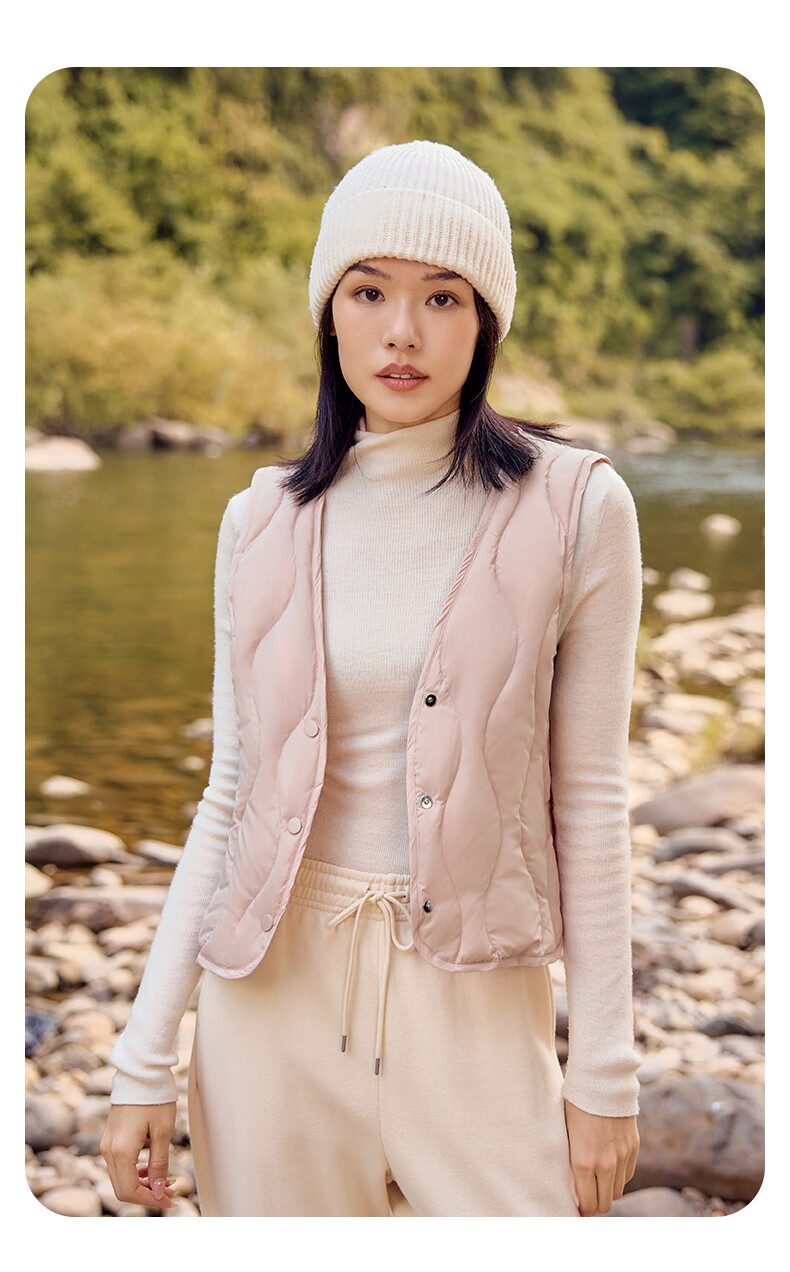 雅鹿羽绒马甲女2025年秋冬新款轻薄内胆保暖时尚贴身大衣内搭V领背心