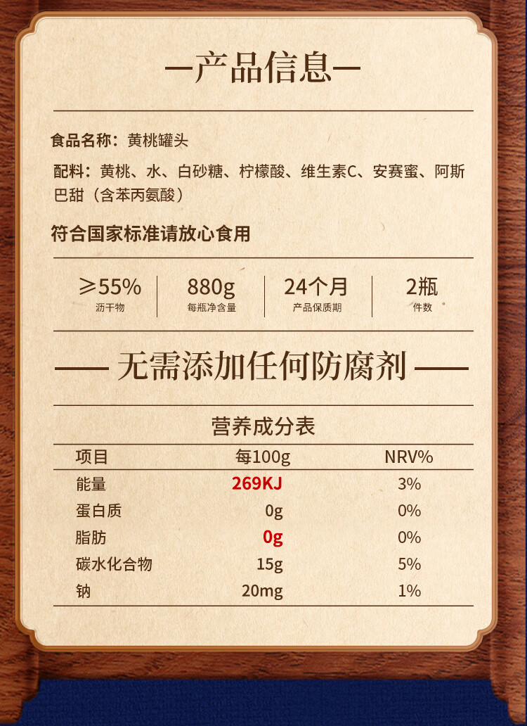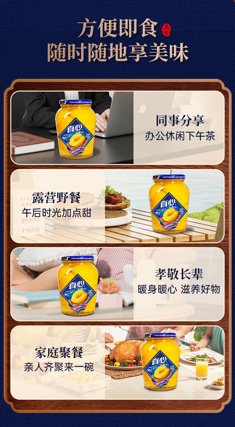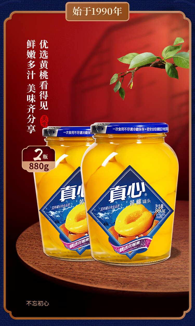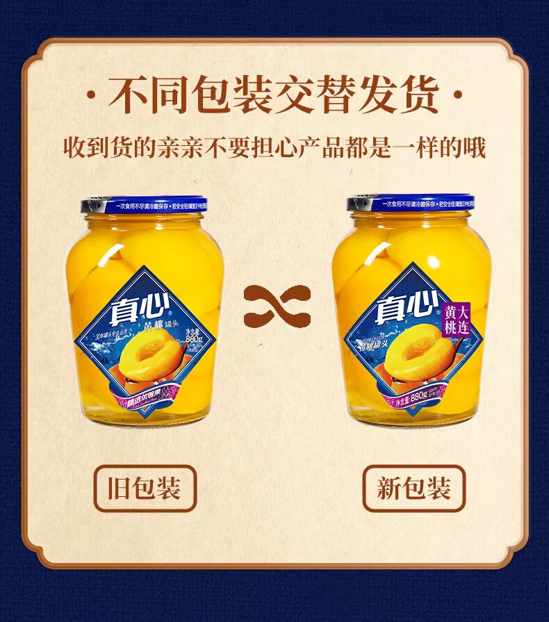 真心黄桃罐头880g*2瓶 对半黄桃水果罐头 糖水饮料水果捞礼盒年货礼物