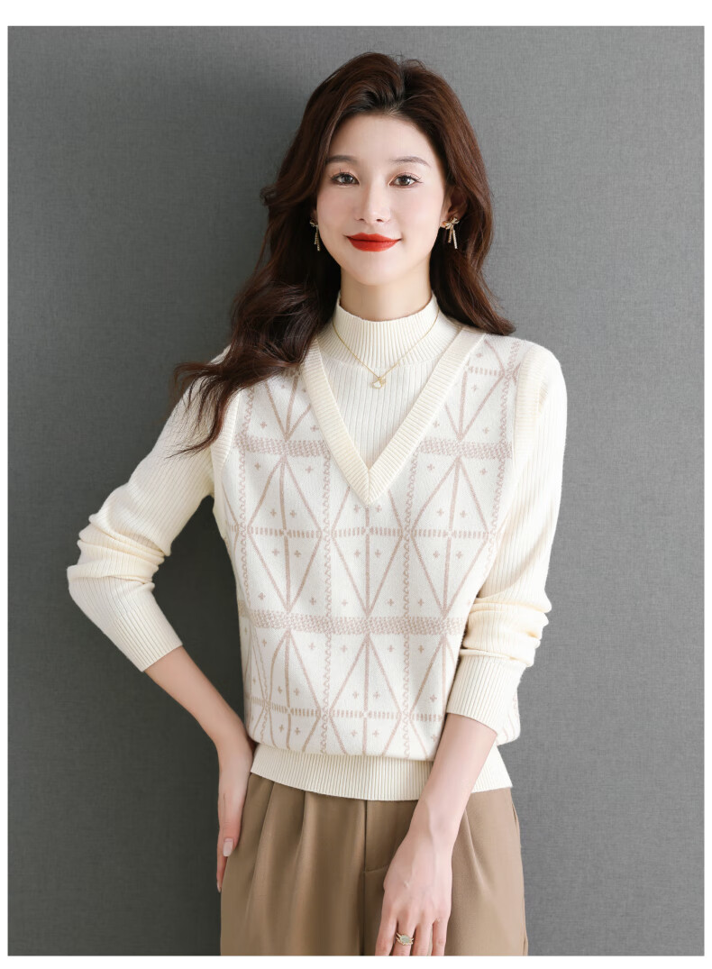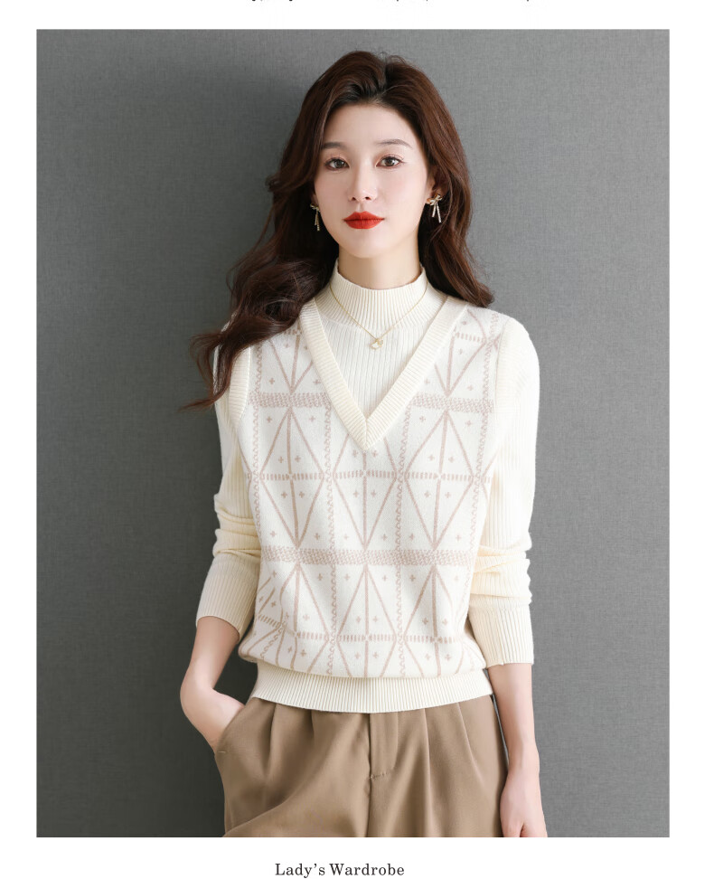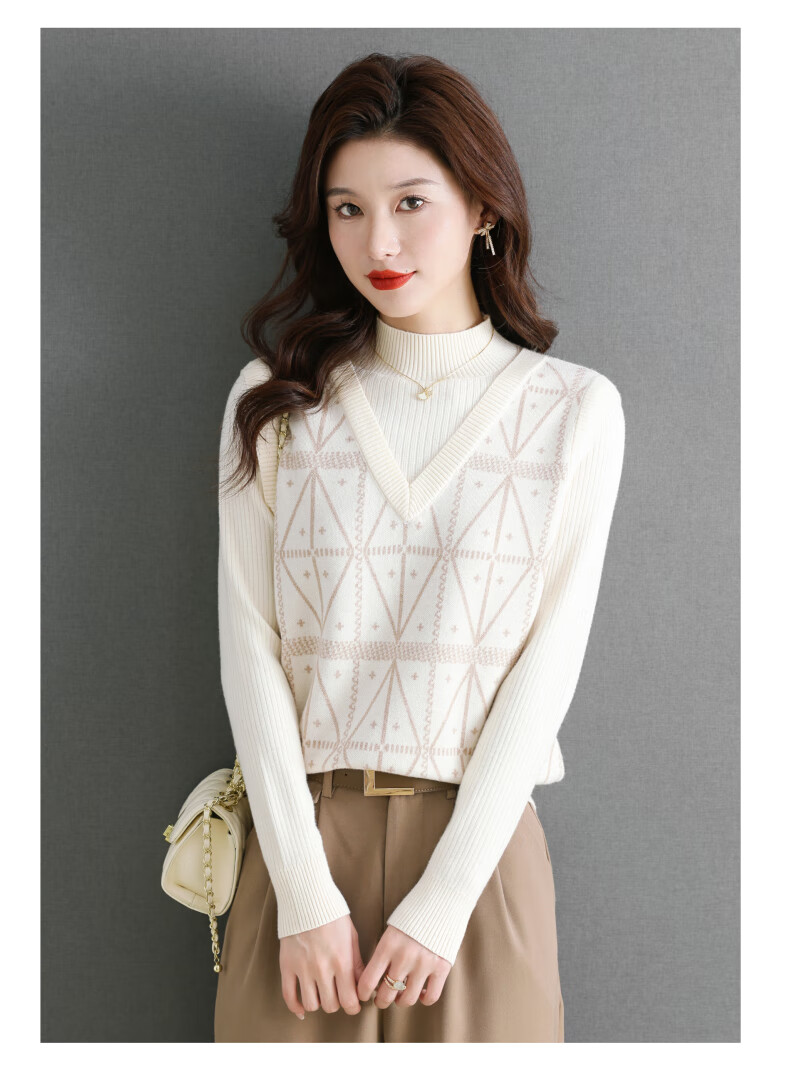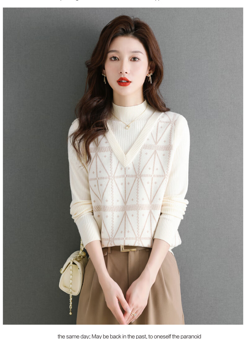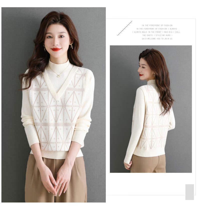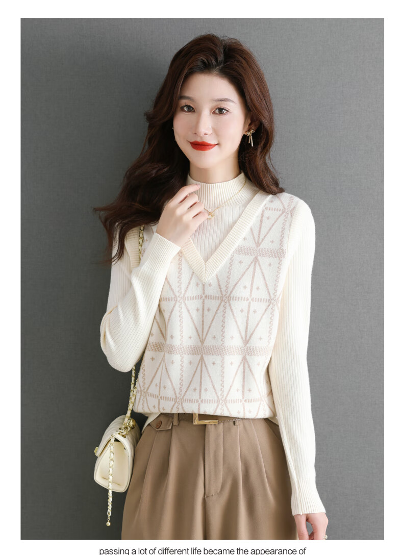 红蜻蜓毛衣女2025年秋季新款女装假两件针织衫女内搭长袖打底衫女士上衣 米杏色长袖 均码