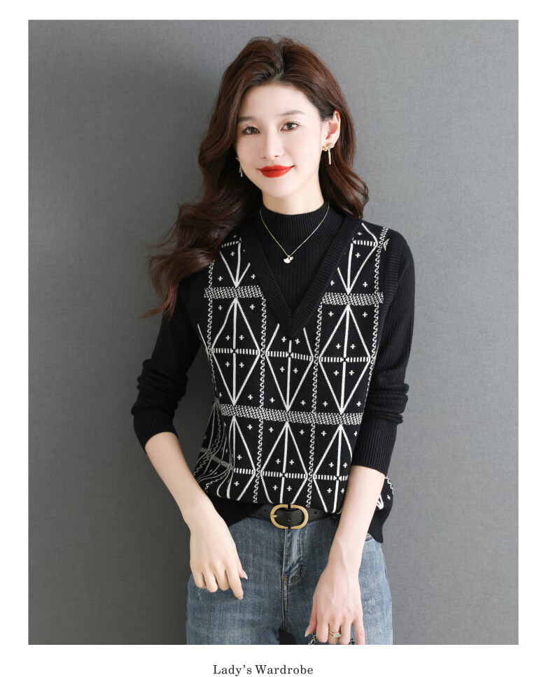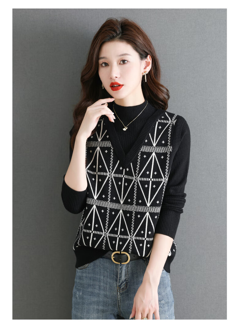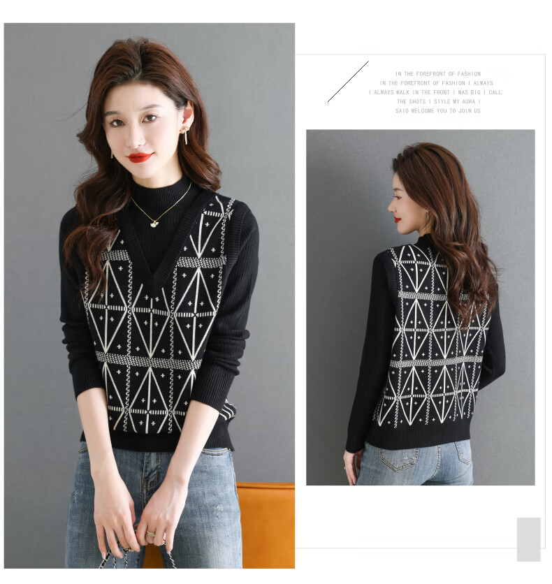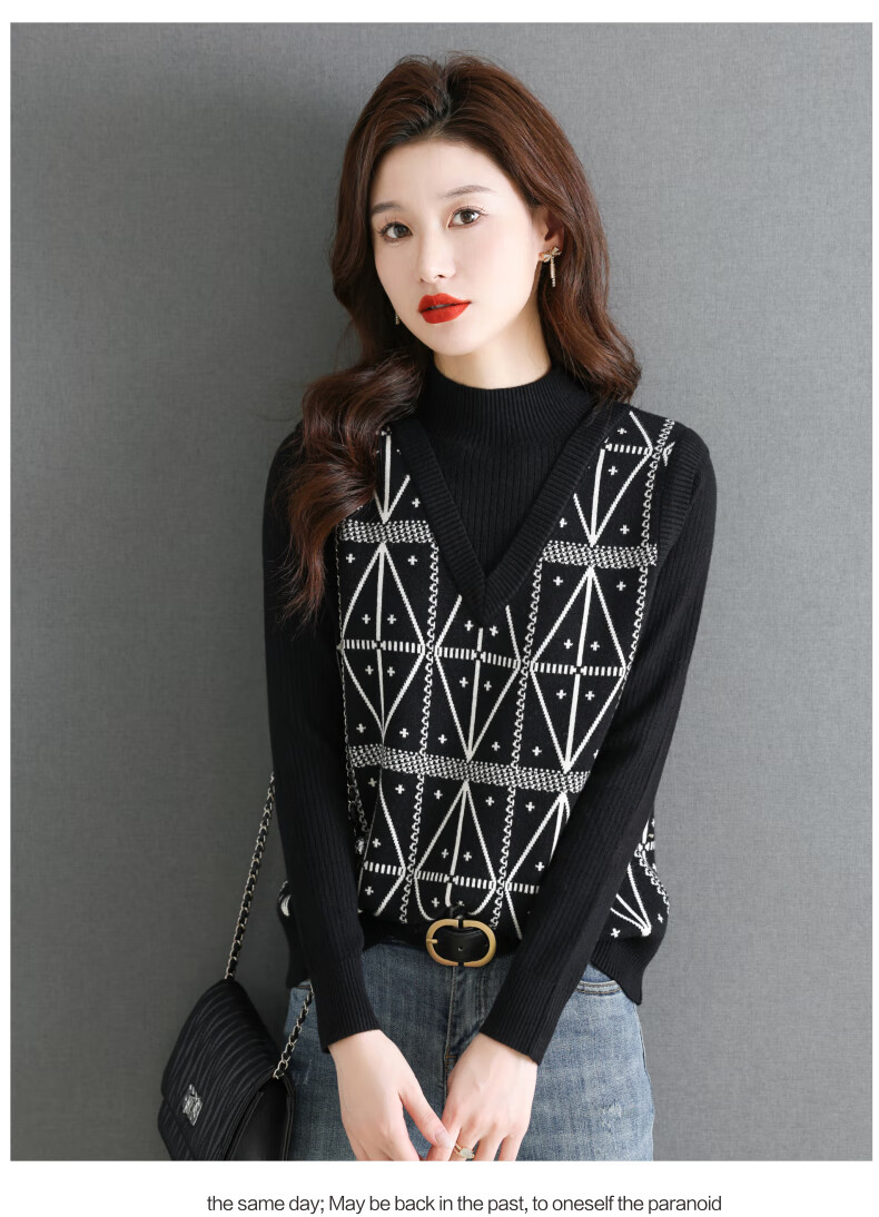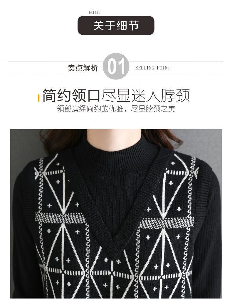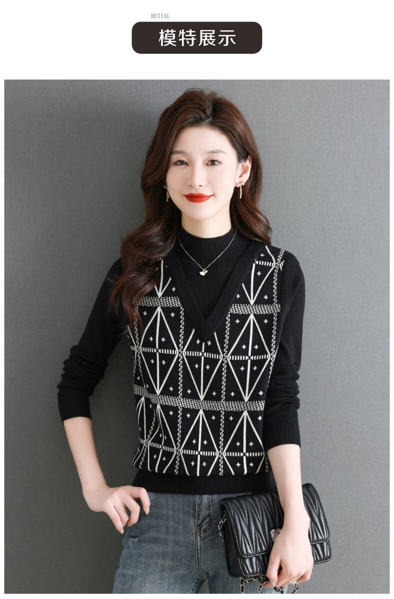 红蜻蜓毛衣女2025年秋季新款女装假两件针织衫女内搭长袖打底衫女士上衣 米杏色长袖 均码