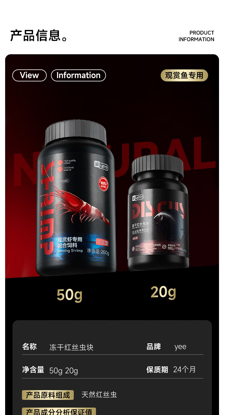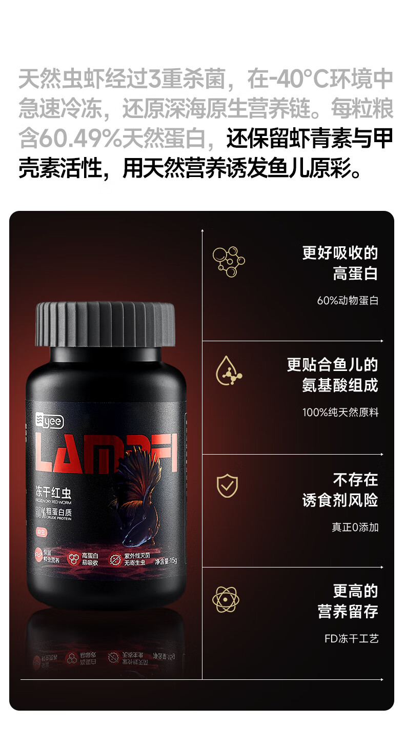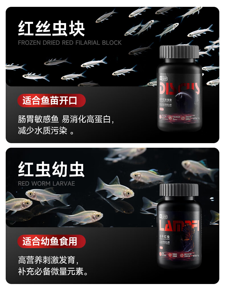 冻干红虫鱼食丰年虾块红线虫小型鱼金鱼孔雀灯鱼斗鱼饲料贴片 【大规格/更实惠】天然红丝虫500ML